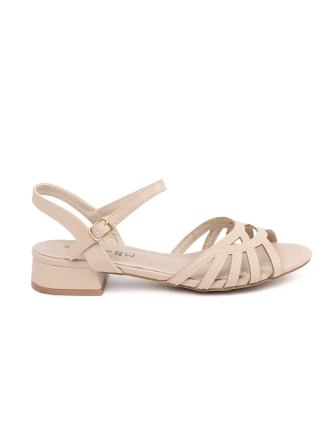 Nazouváky na nízkém klínku s přezkami světle béžové