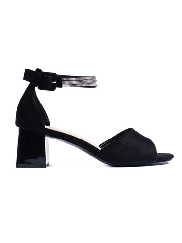 Černo-stříbrné sandály na podpatku s mašlí Potocki