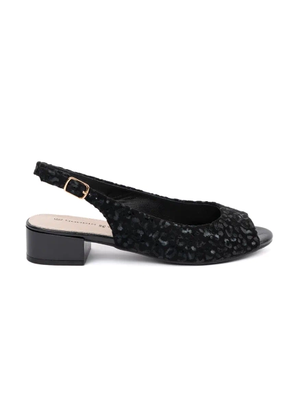 Černé panterové sandály na nízkém podpatku
