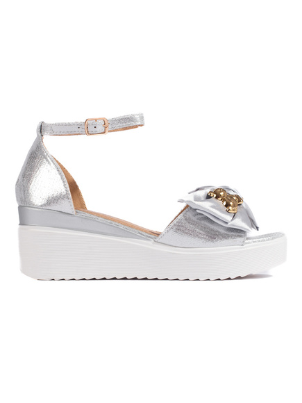 Černo-stříbrné sandály na podpatku s mašlí Potocki