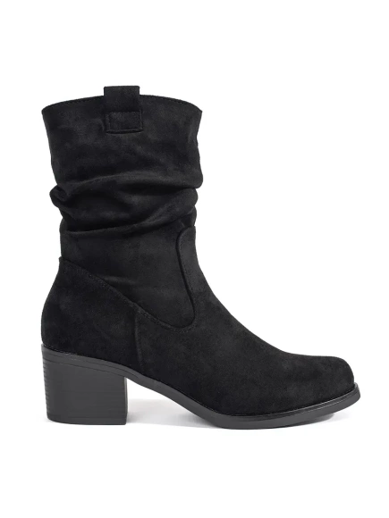 Černé dámské kotníkové boty ve stylu kovbojek s řaseným svrškem