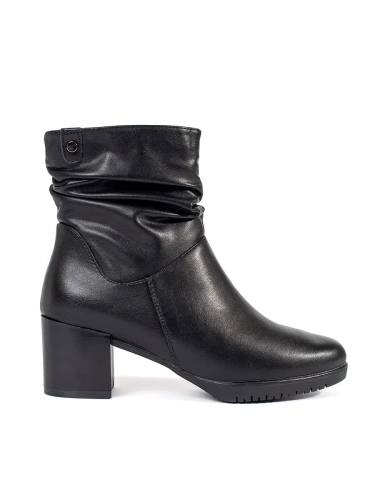 Černé dámské kožené kotníkové boty na sloupku s vrásněným svrškem Sergio Leone