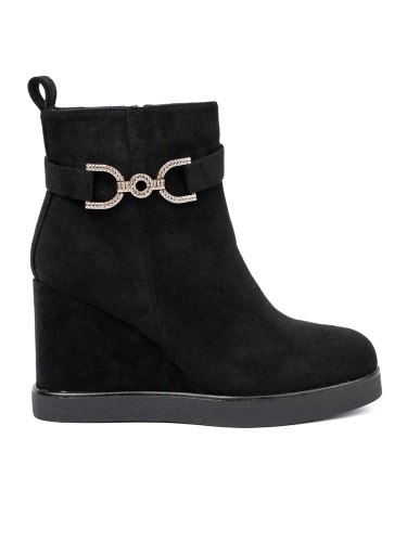 Černé semišové kotníkové boty na vysokém sloupku zateplené