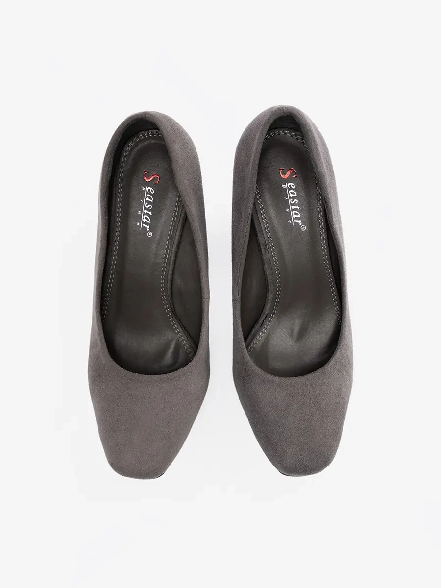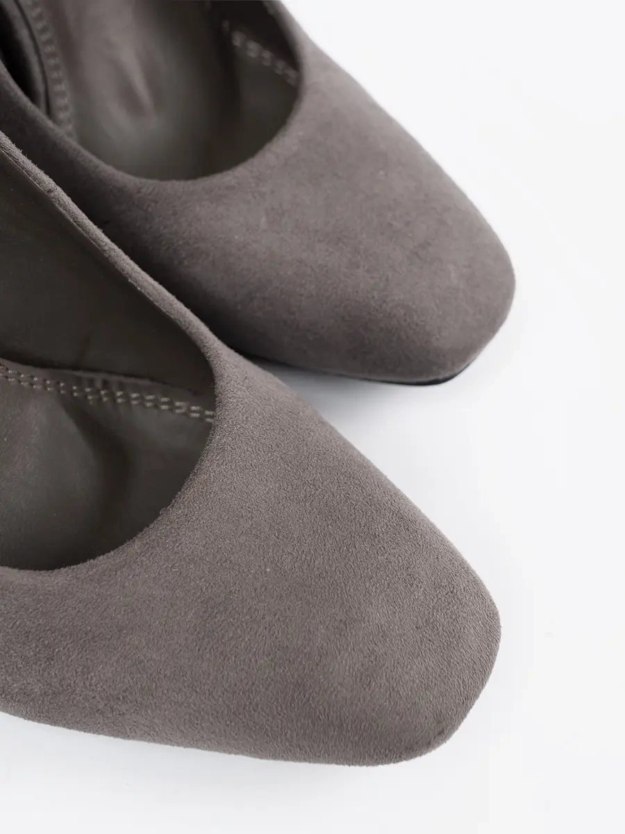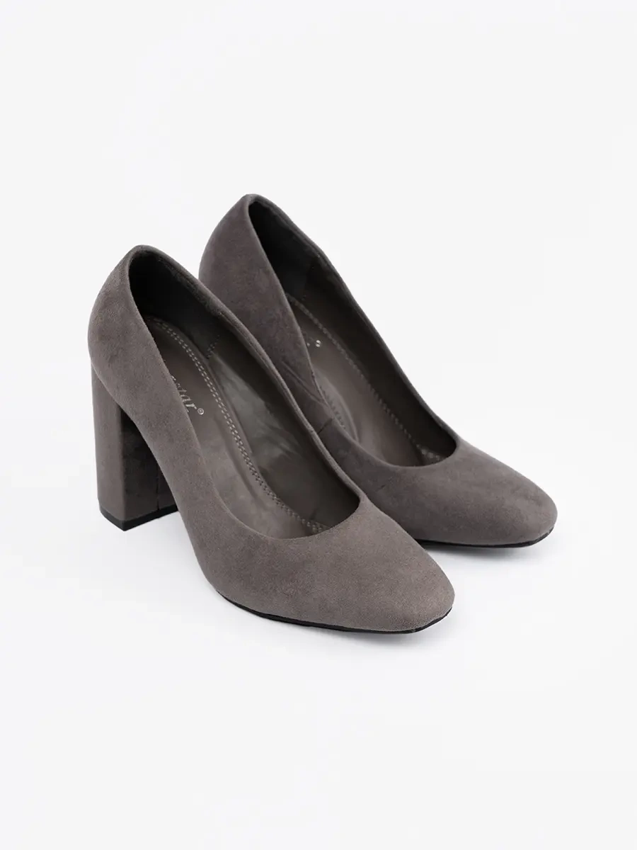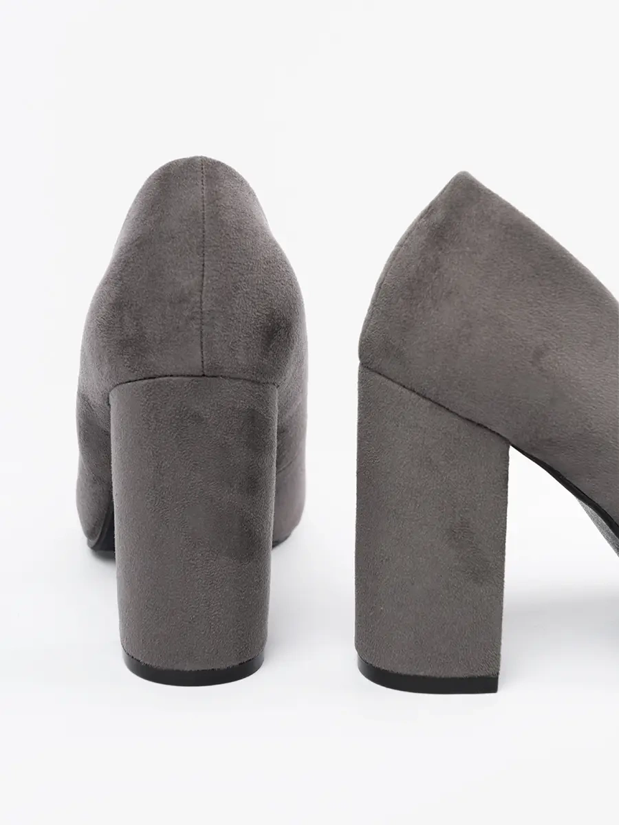Šedé zamszowe lodičky na sloupku - elegance pro každý den