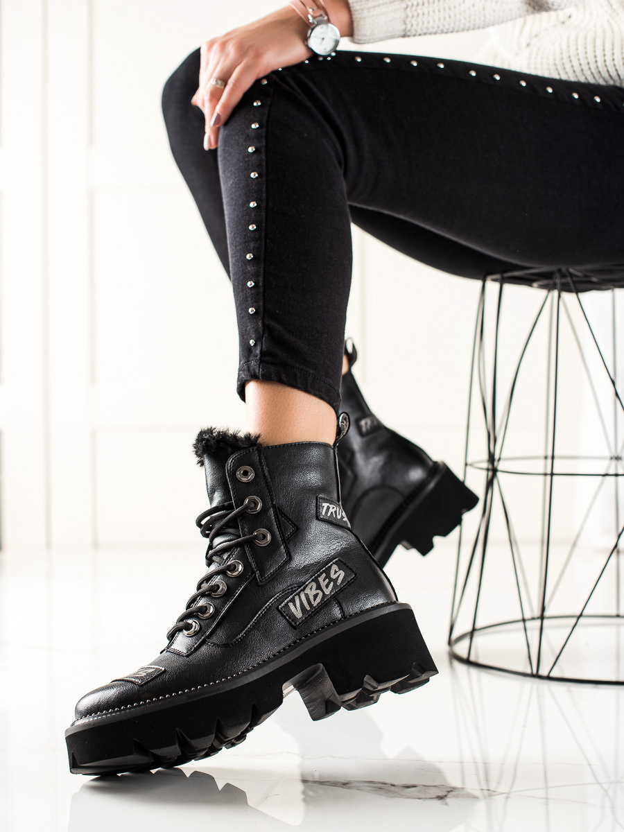 Pohodlné šněrování umožňuje dokonalé přizpůsobení obuvi vašemu nohou. Plochý obcas a podrážka s běžícím vzorem zaručují pohodlí a stabilitu při chůzi. Oceníte také tkaninovou stélku a ocieplení, které vás zahřeje v chladnějších dnech.
