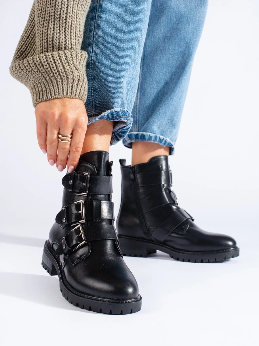 Ocieplane czarne workery ze sprzączkami - moderní a pohodlná obuv pro ženy