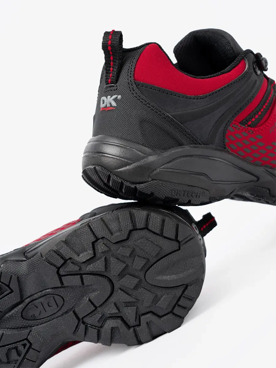 Červené dámské trekové boty DK na tlusté podrážce jsou ideální pro všechny dobrodružné ženy, které milují přírodu, ale nechtějí se vzdát svého stylu. Jsou perfektní pro dlouhé procházky v přírodě, horské túry, ale i pro běžné nošení ve městě. Díky svému modernímu designu a výrazné červené barvě vypadají skvěle v kombinaci s džínami, ale i s sportovním oblečením.