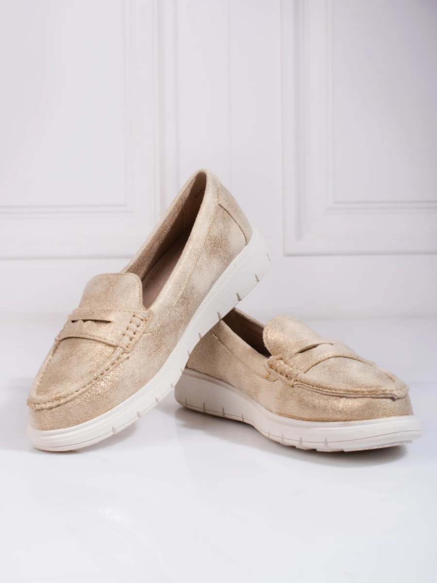 Zářivé zlaté dámské mokasíny - skvělá volba pro každodenní nošení