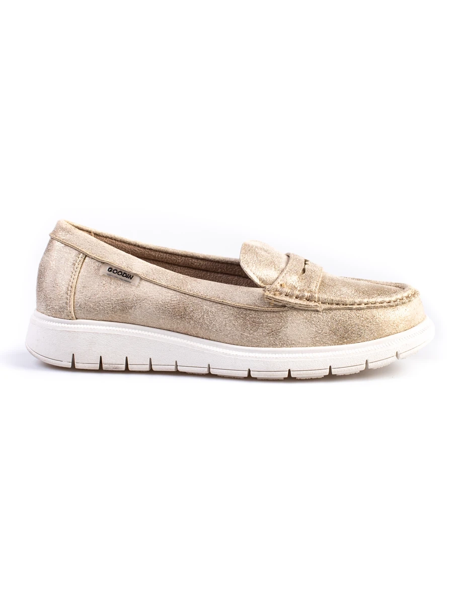 Ukažte svůj jedinečný styl s našimi zlatými dámskými mokasíny. Tato obuv přináší dokonalou rovnováhu mezi pohodlím a moderním designem, který nezůstane nepovšimnut.
