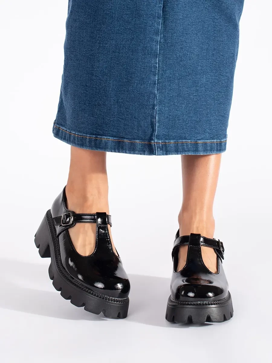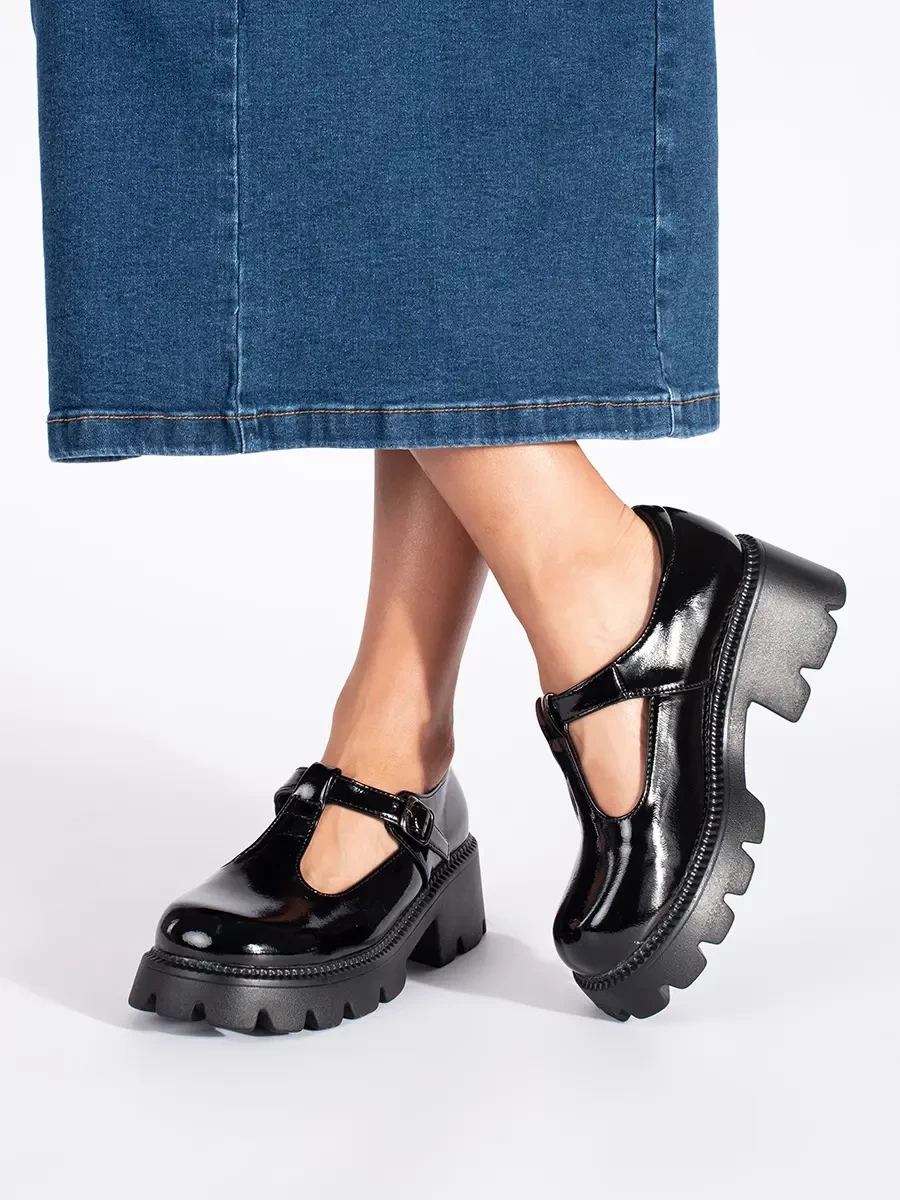 Černé lakované polobotky na platformě dámské