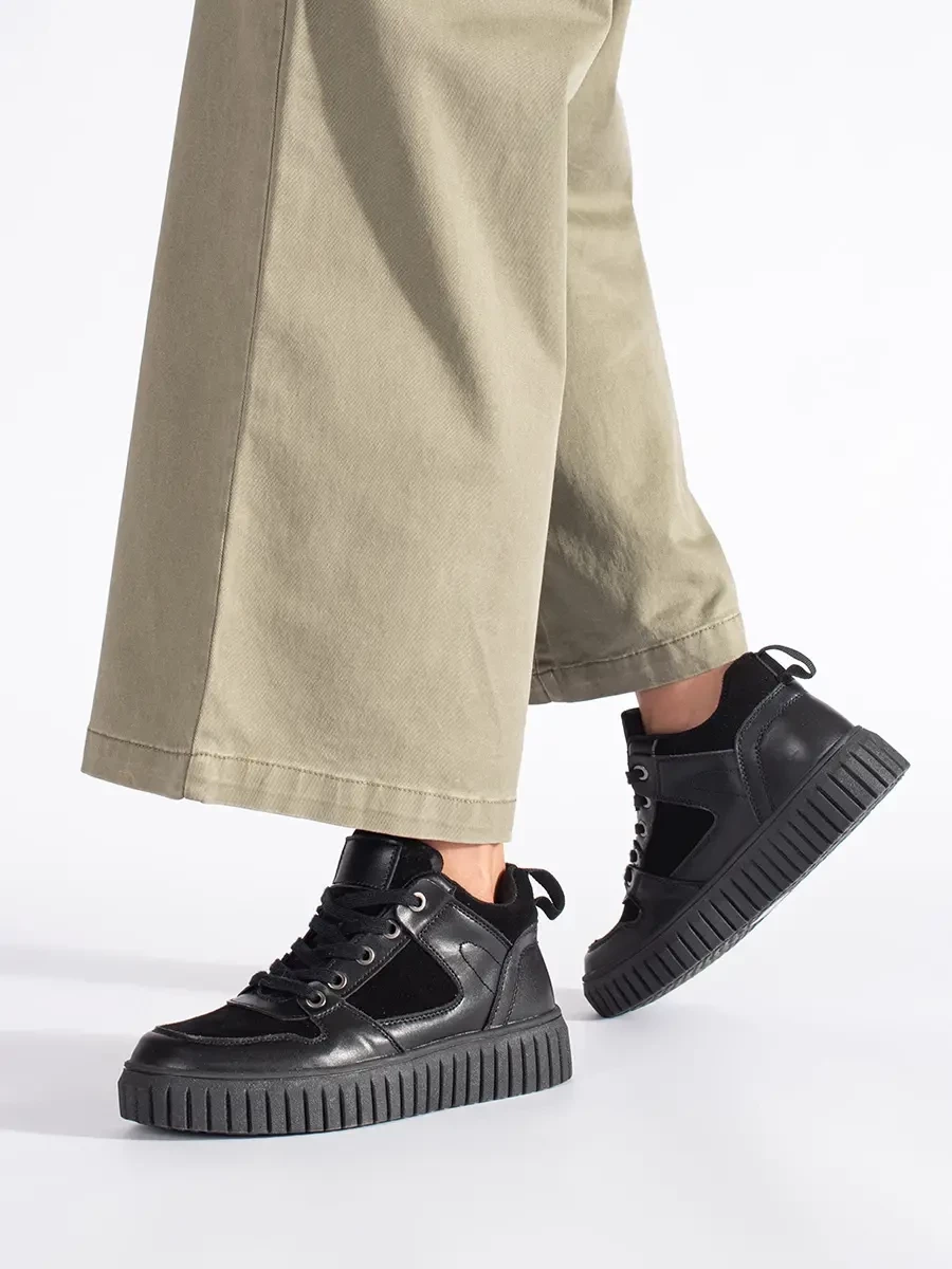 Naše černé dámské sneakersy jsou vytvořeny pro moderní ženy, které si cení kvality a komfortu. Jsou vyrobeny ze 50% přírodní kůže a 50% přírodního semišu, což jim dodává luxusní vzhled a zaručuje dlouhou životnost. Černá barva jim dodává sofistikovaný charakter a umožňuje kombinovat je s jakýmkoli outfitem, od sportovního až po elegantní.