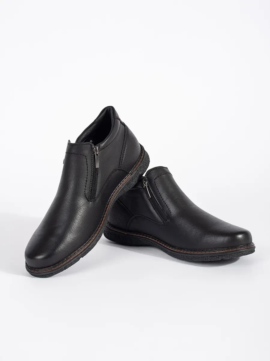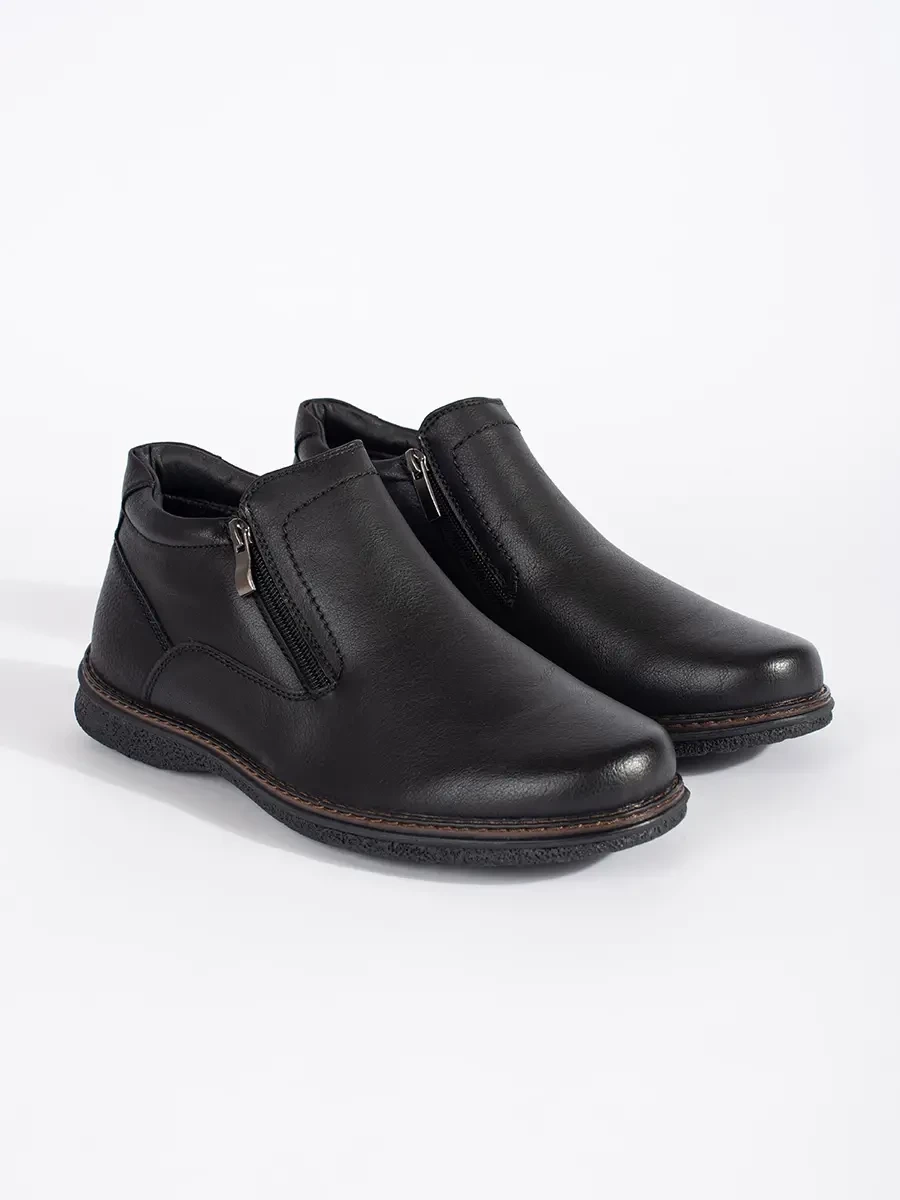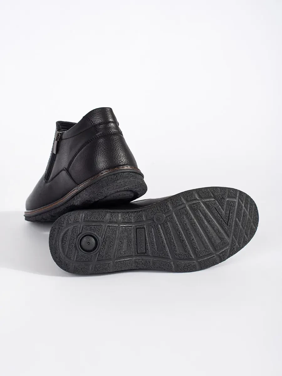 Naše zimní boty pro muže jsou navrženy tak, aby Vám poskytovaly maximální pohodlí během celého dne. Teplá textilní vložka a stabilní podeszwa z umělého materiálu s běžníkem zajistí pohodlnou a bezpečnou chůzi na jakémkoliv povrchu. Navíc, díky praktickému zipu jsou boty snadno obuvatelné.