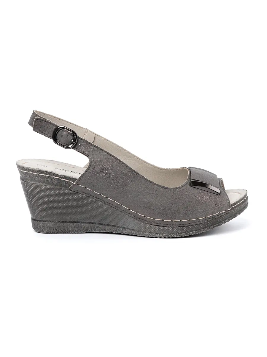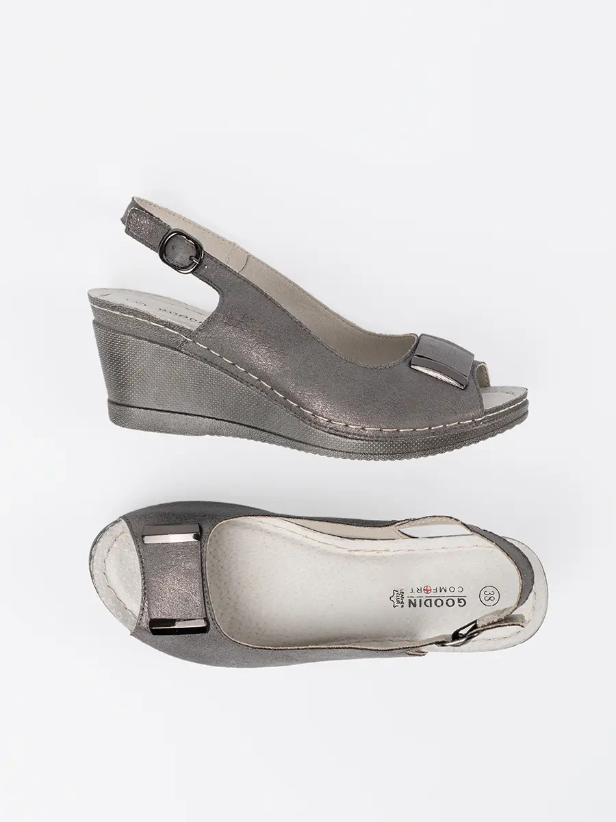 Šedé dámské sandály na klínku