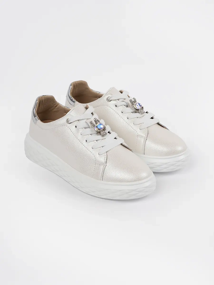 Tyto tenisky jsou vyrobeny z 100% přírodní kůže, což zaručuje vysokou kvalitu a dlouhou životnost. Bílo-stříbrný odstín jim dodává moderní a svěží vzhled, který se snadno kombinuje s různými styly oblečení. Zapínání na šněrování umožňuje pohodlné obouvání a výbornou fixaci nohy.