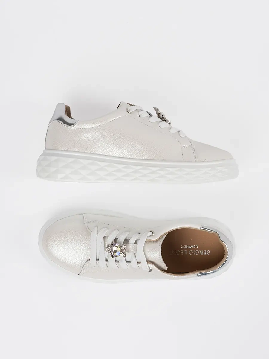 Bílo-stříbrné tenisky Sergio Leone jsou univerzálním doplňkem do vašeho šatníku. Lze je nosit na běžné denní nošení, ale také ke sportovnímu oblečení. Díky svému modernímu designu a vynikající kvalitě představují skvělou volbu pro každou ženu, která chce být trendy a cítit se pohodlně.