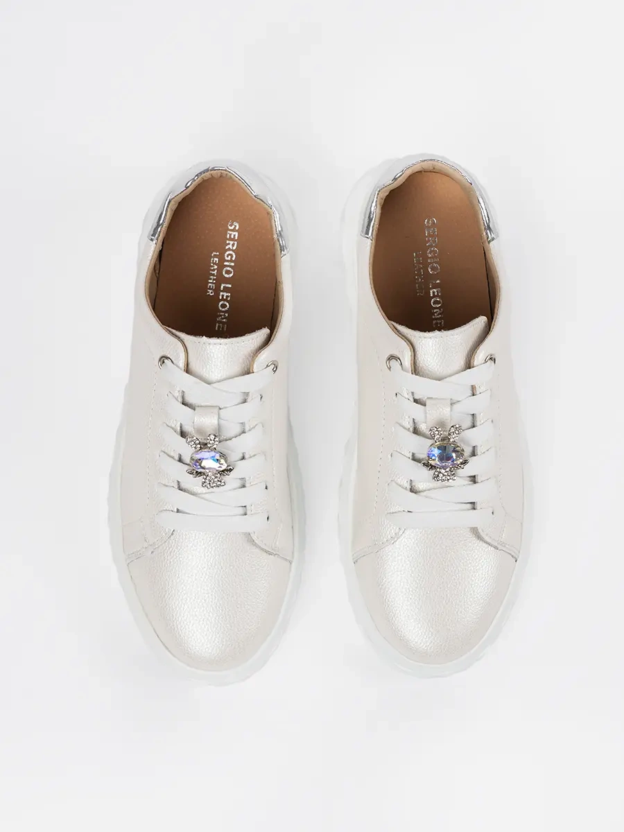 Představujeme Vám bílo-stříbrné tenisky značky Sergio Leone, které jsou dokonalou kombinací moderního designu a pohodlí. Tento model je skvělým doplňkem pro každou ženu, která chce být trendy a zároveň si zakládá na kvalitě a komfortu.