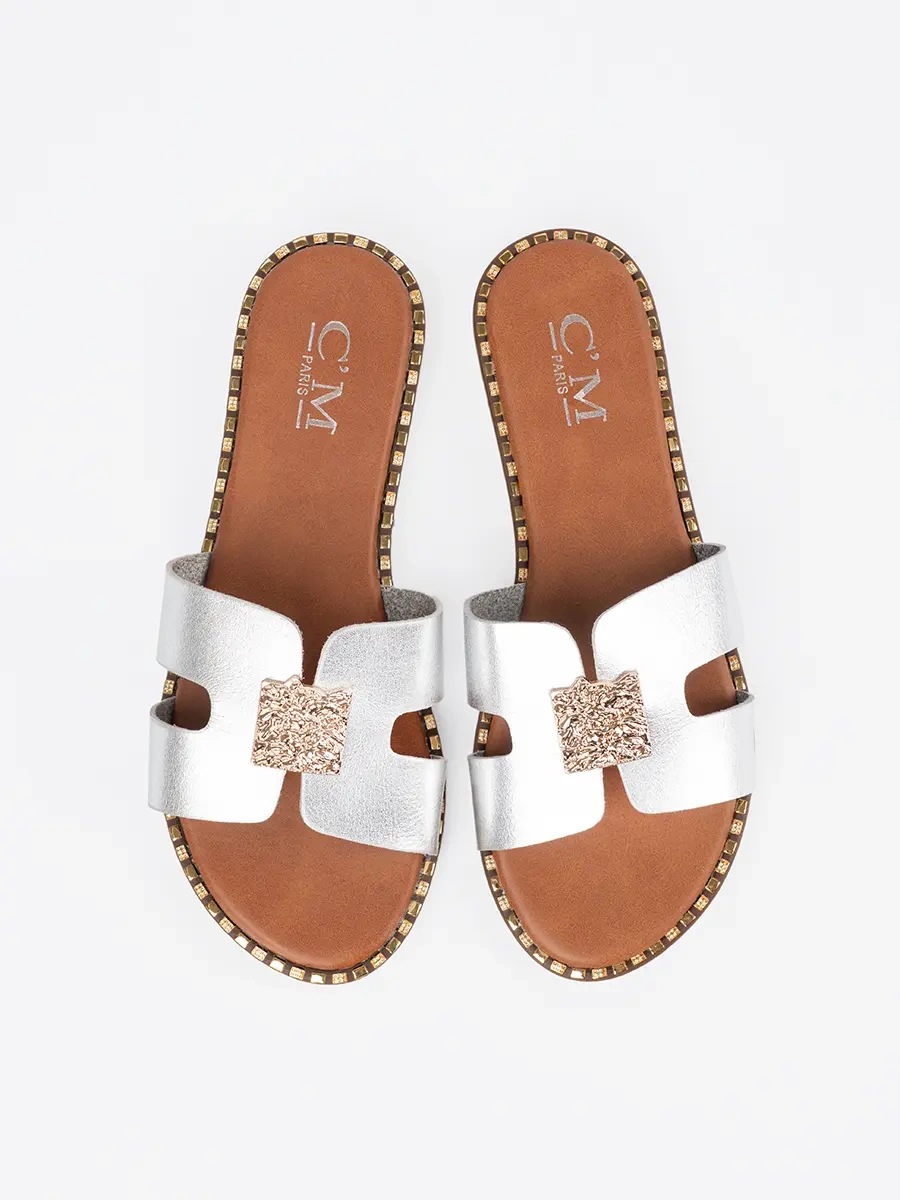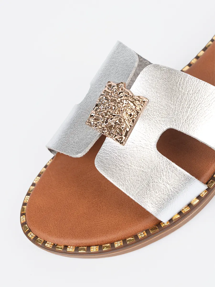 Stříbrné nazouváky s výřezy na ploché podrážce