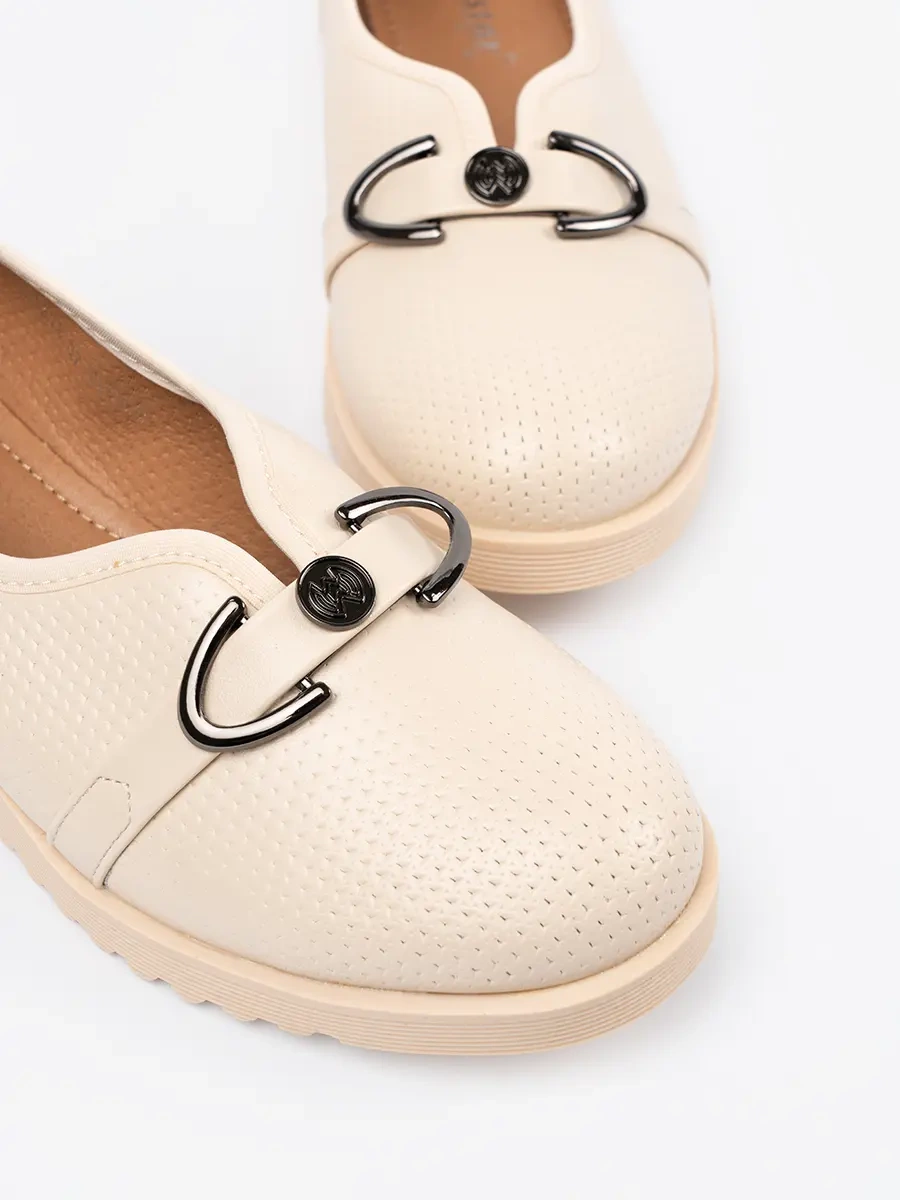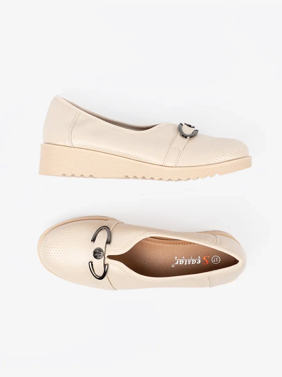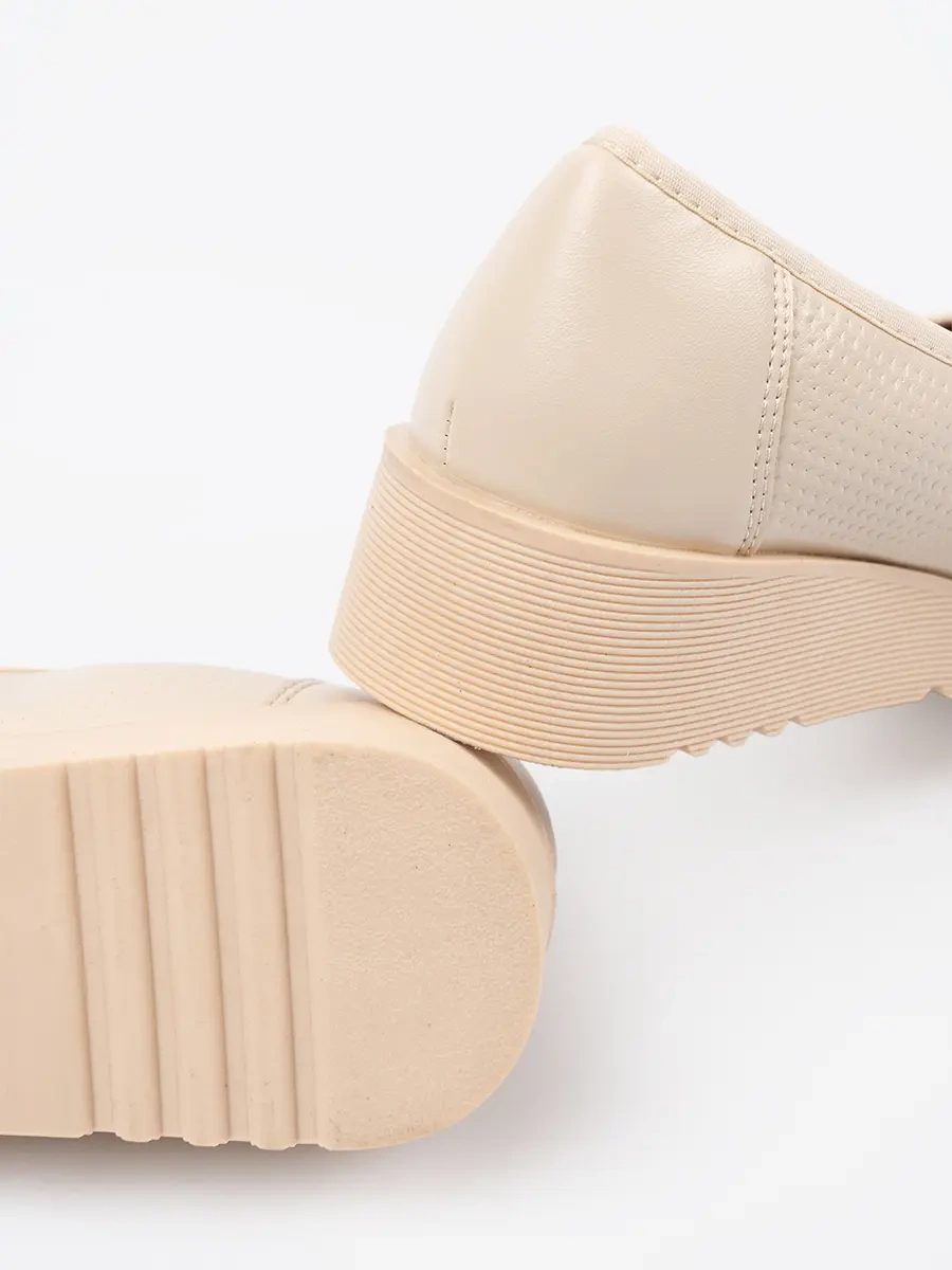 Naše dámské půlboty na koturně jsou výsledkem pečlivého výběru materiálů a precizního zpracování. Jsou vyrobeny z vysoce kvalitní imitace kůže, která dodává botám luxusní vzhled a zároveň zaručuje jejich dlouhou životnost. Elegantní béžová barva podtrhne vaši ženskost a dodá vám sebevědomí při každém kroku.