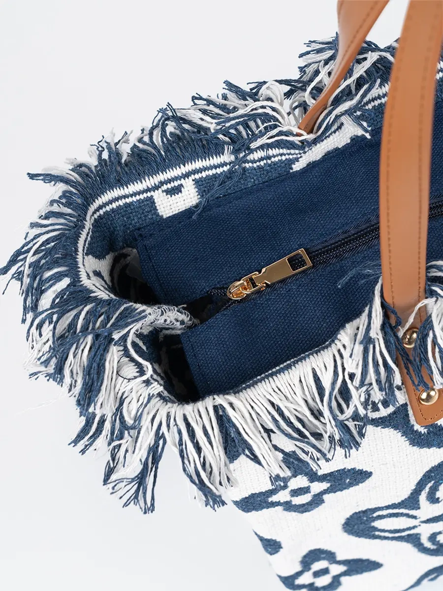 Tato plážová taška s fringemi je nezbytností v šatníku každé moderní ženy. Je ideální na pláž, na piknik nebo na procházku městem. Díky svému jedinečnému designu a všestrannosti se stane nepostradatelným doplňkem vašeho letního šatníku.