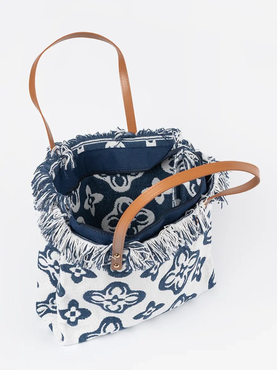 Objevte eleganci a moderní styl s naší novou plážovou taškou s fringemi. Tato jedinečná taška, která kombinuje klasický design s moderním twistem, je ideální pro všechny letní výlety a dovolené u moře.