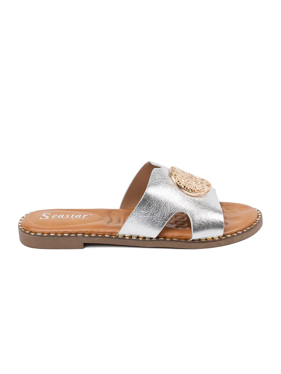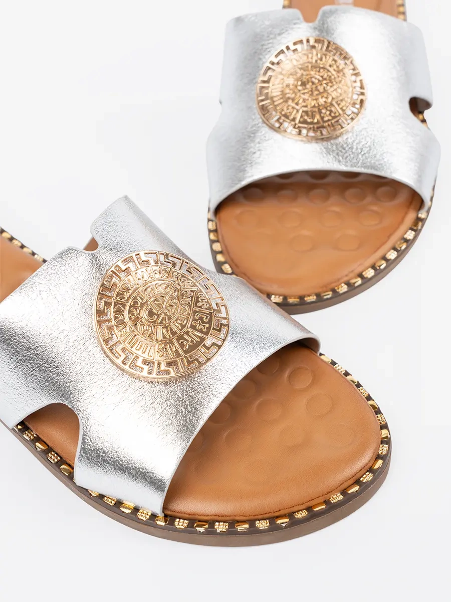 Srebrné dámské šľapky s zlatou ozdobou – přidejte lesk každému dni