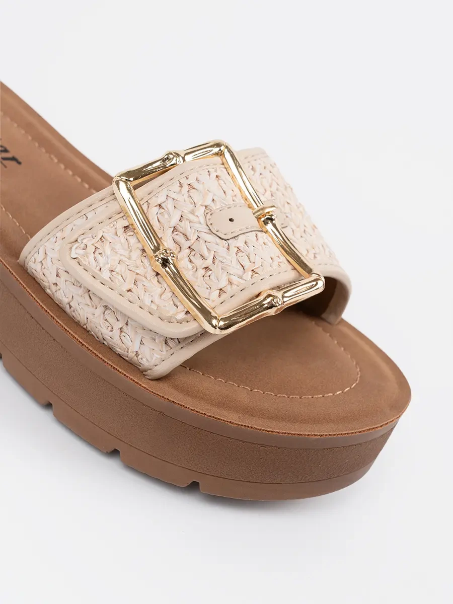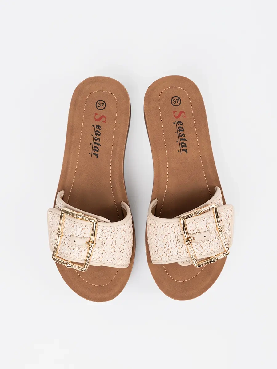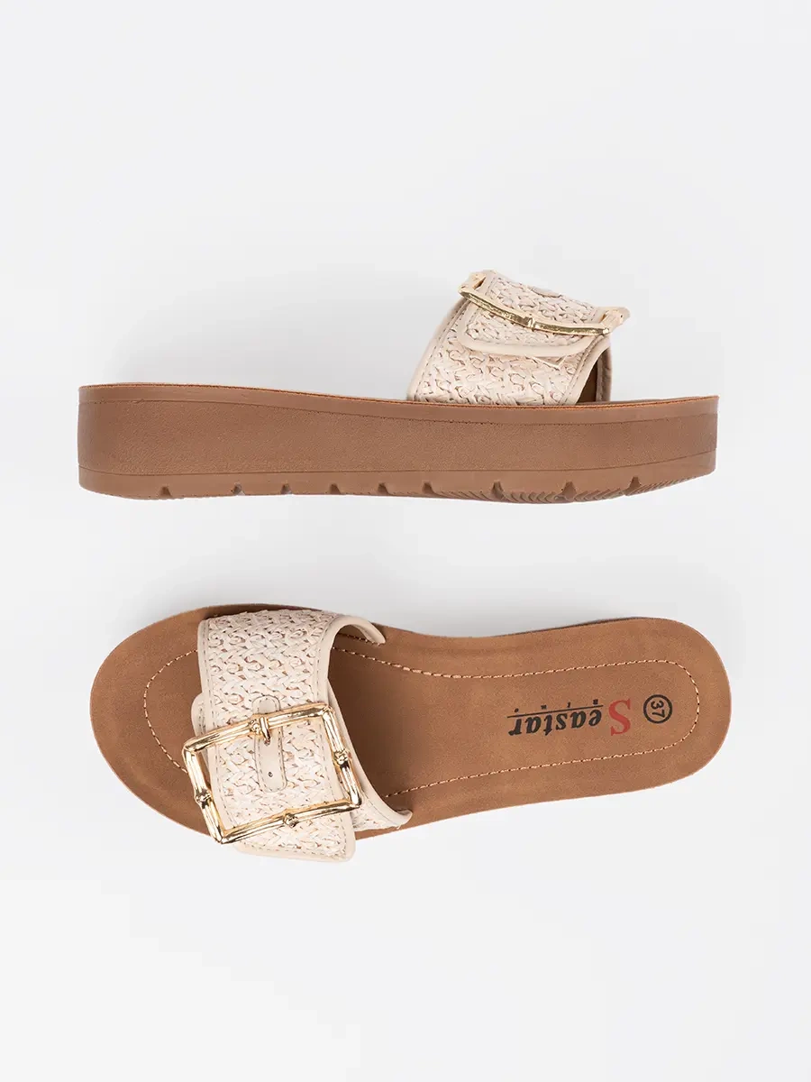 Klapki zdobione złotą klamrą - elegantní a moderní volba pro léto