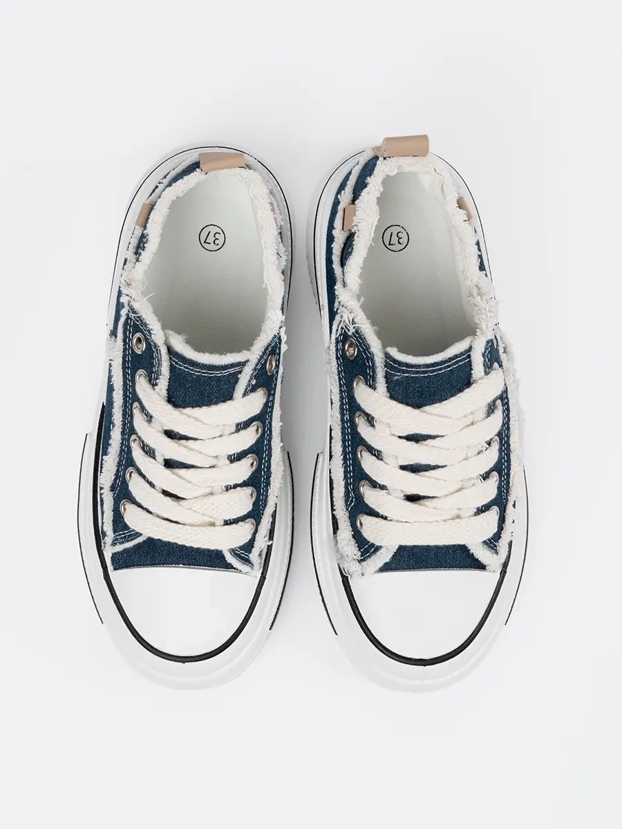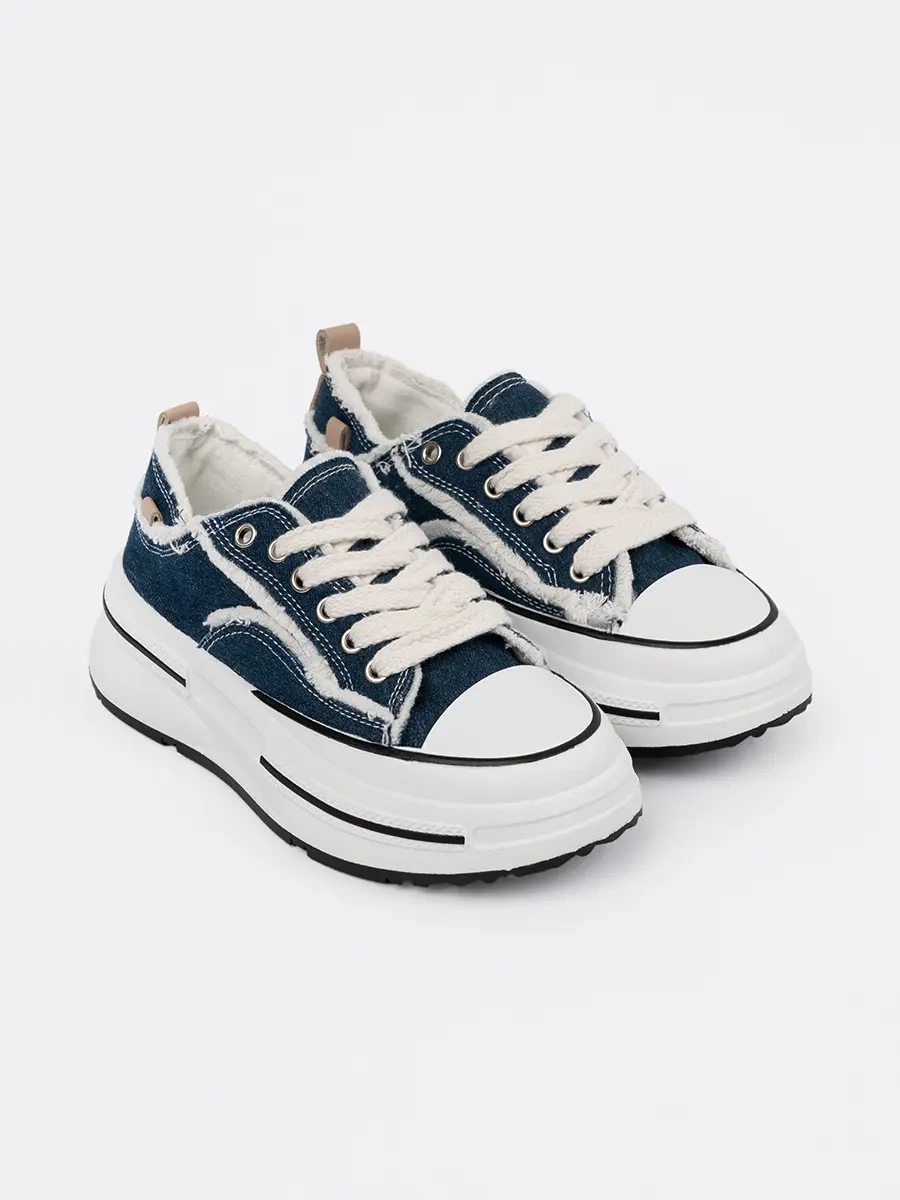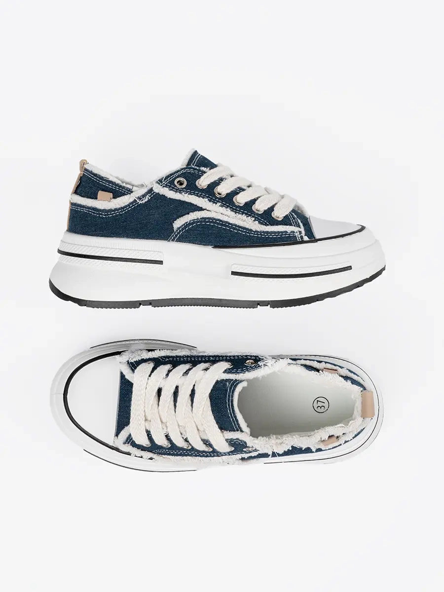 recenze Tmavě modré dámské tenisky s bílými vsadkami