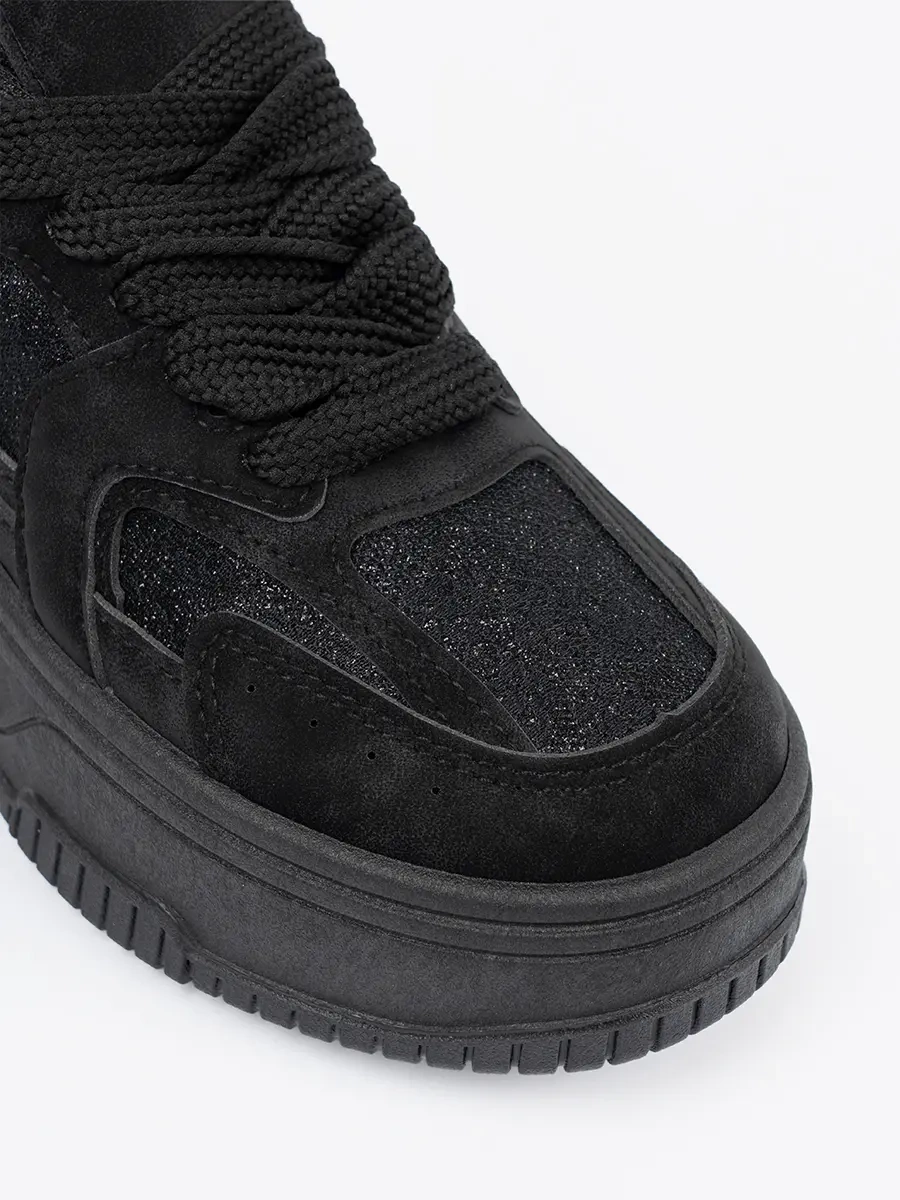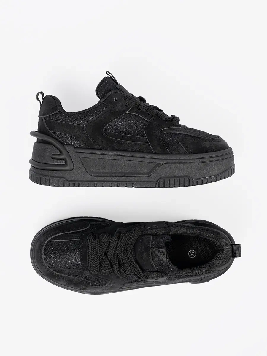Tyto sneakersy představují dokonalou syntézu elegance a sportovního stylu. Černá barva a detaily z koronky dodávají botám sofistikovaný vzhled, zatímco platformový podpatek a sportovní silueta odráží urban look. Toto obuv je ideální pro ženy, které si cení módních trendů a nebojí se vyjádřit svůj jedinečný styl.