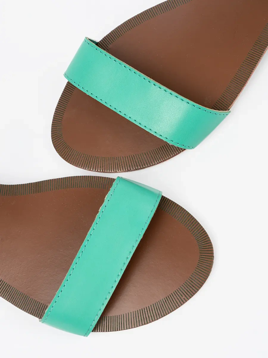 Zelené sandály s páskem kolem kotníku se zlatou ozdobou