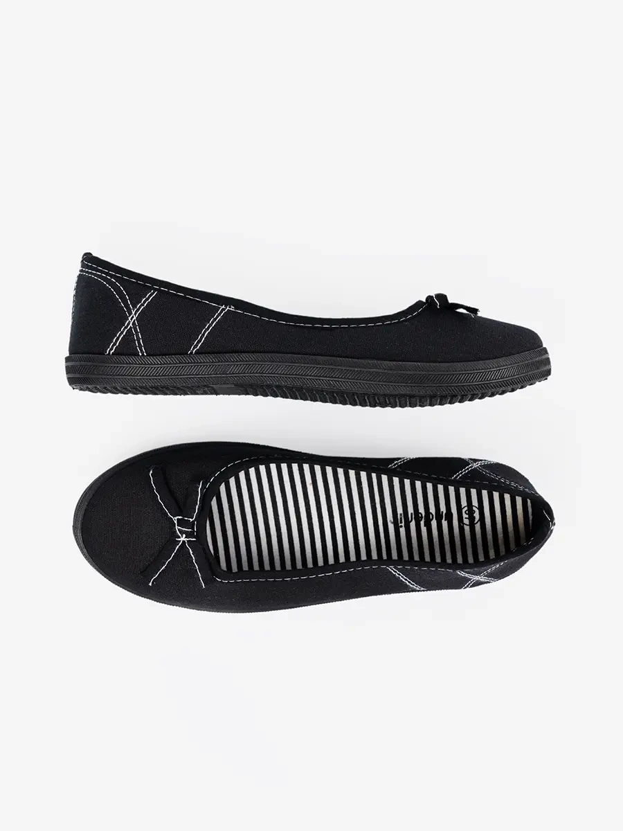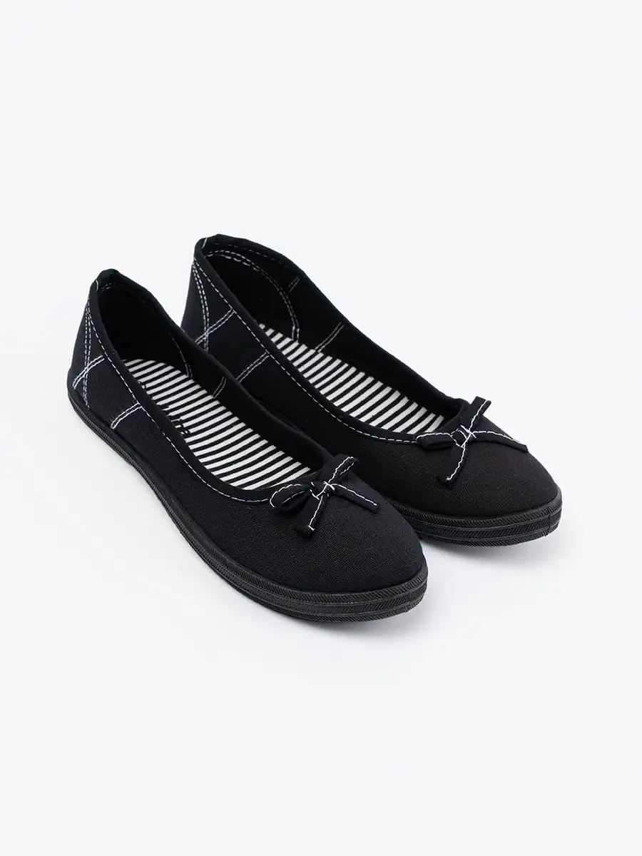 Černé textilní baleríny s mašličkou – synonymum elegance a pohodlí