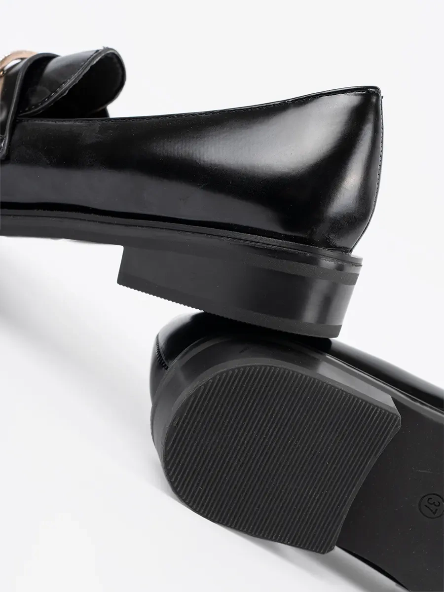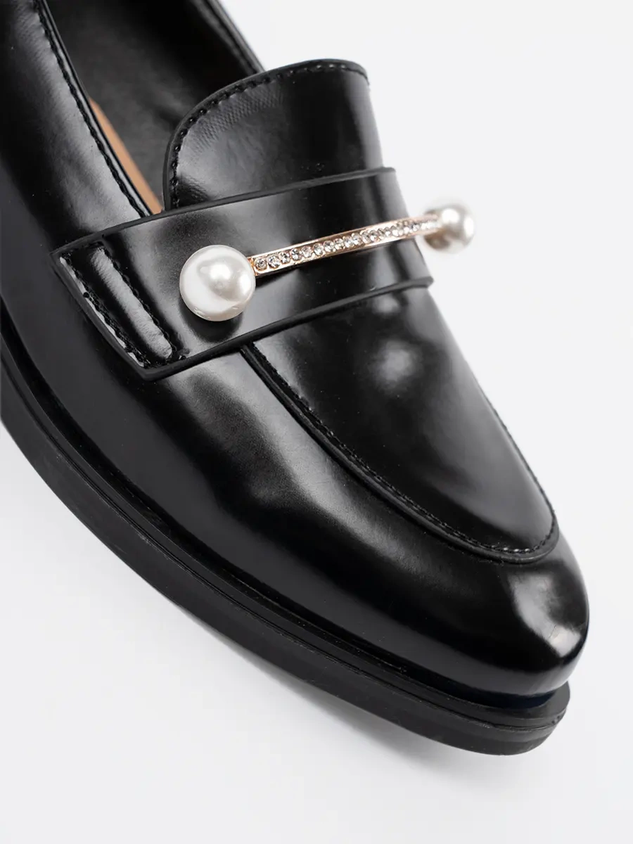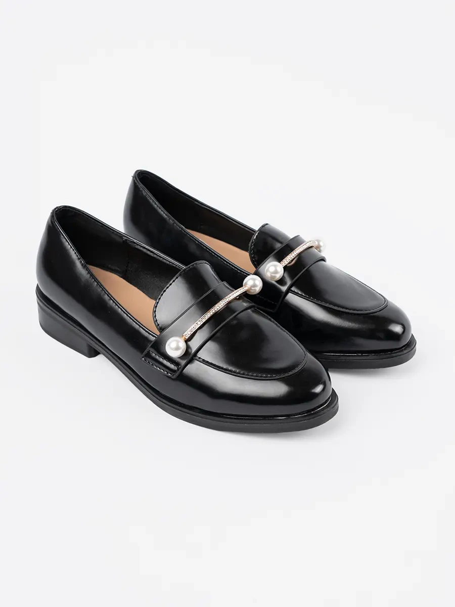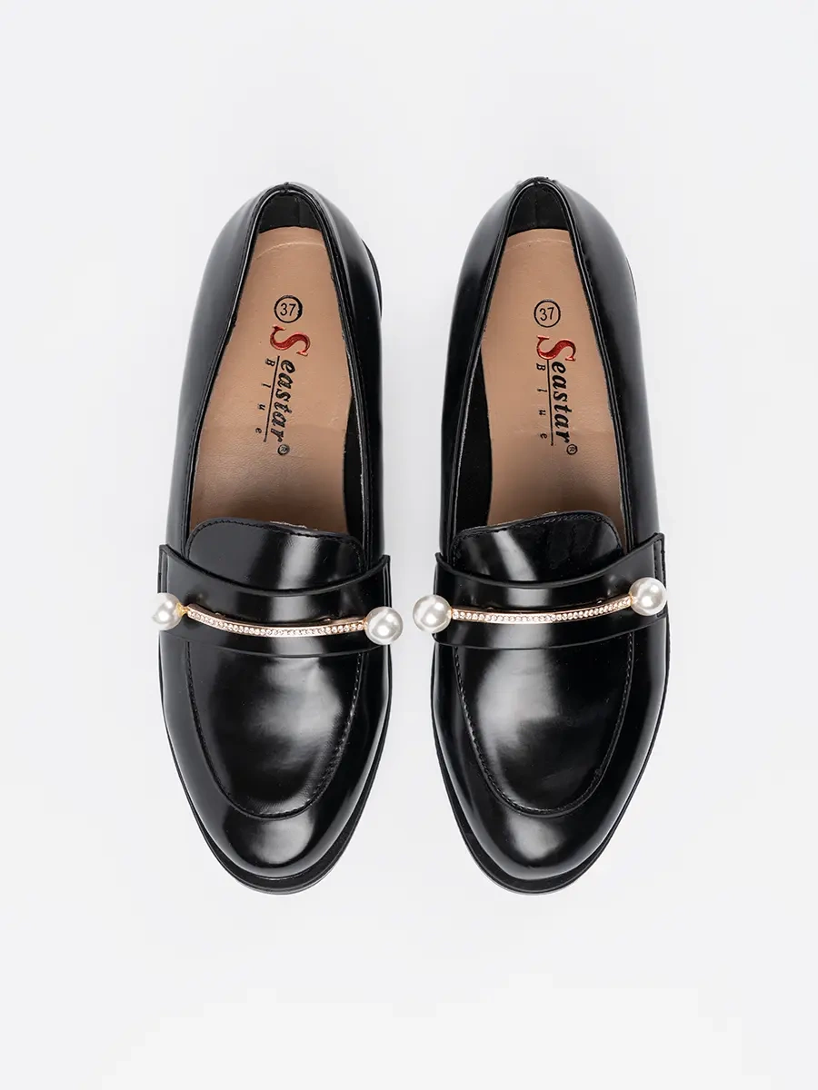 Černé lakované mokasíny s perličkami - šarm a pohodlí pro každý den