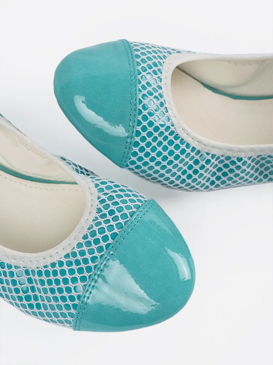 Tyto balerínky jsou skvělým příkladem toho, jak může vypadat dokonalá kombinace kvality a stylu. Jsou vyrobeny z kvalitní imitace kůže a textilu, což jim dodává eleganci a zároveň zajišťuje jejich dlouhou životnost. Modrá barva a bílá mašlička jim dodávají šarm a originalitu, které z nich dělají skvělý doplněk jak k elegantním, tak i ke casual outfitům.