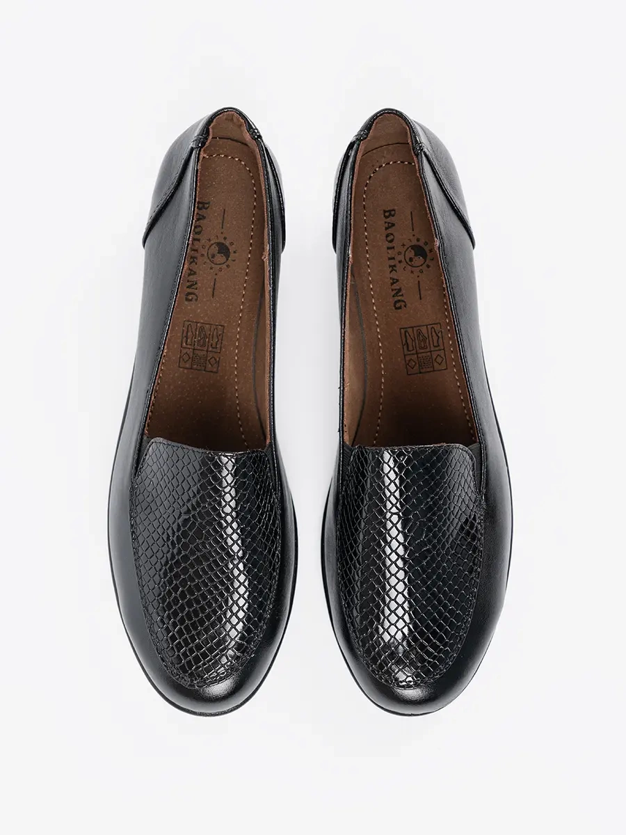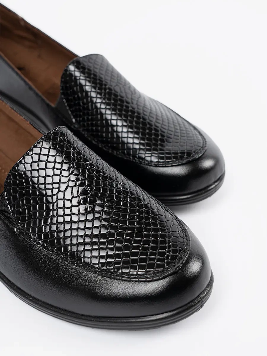 Naše polobotky jsou vytvořeny pro ženy, které oceňují luxus a pohodlí. Jsou vyrobeny z vysoce kvalitní ekologické kůže s texturou hadí kůže, což jim dodává jedinečný a moderní vzhled. Černá barva jim dodává eleganci a hodí se jak k elegantním, tak i casual outfitům.
