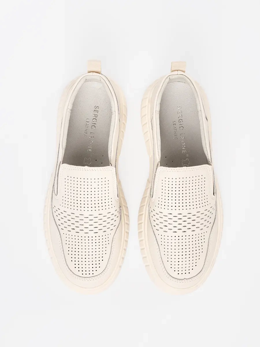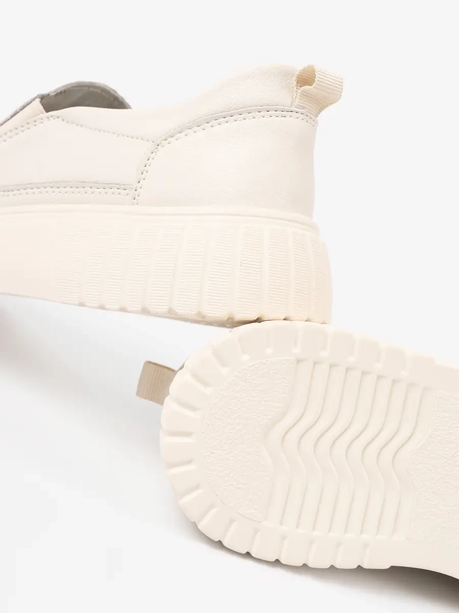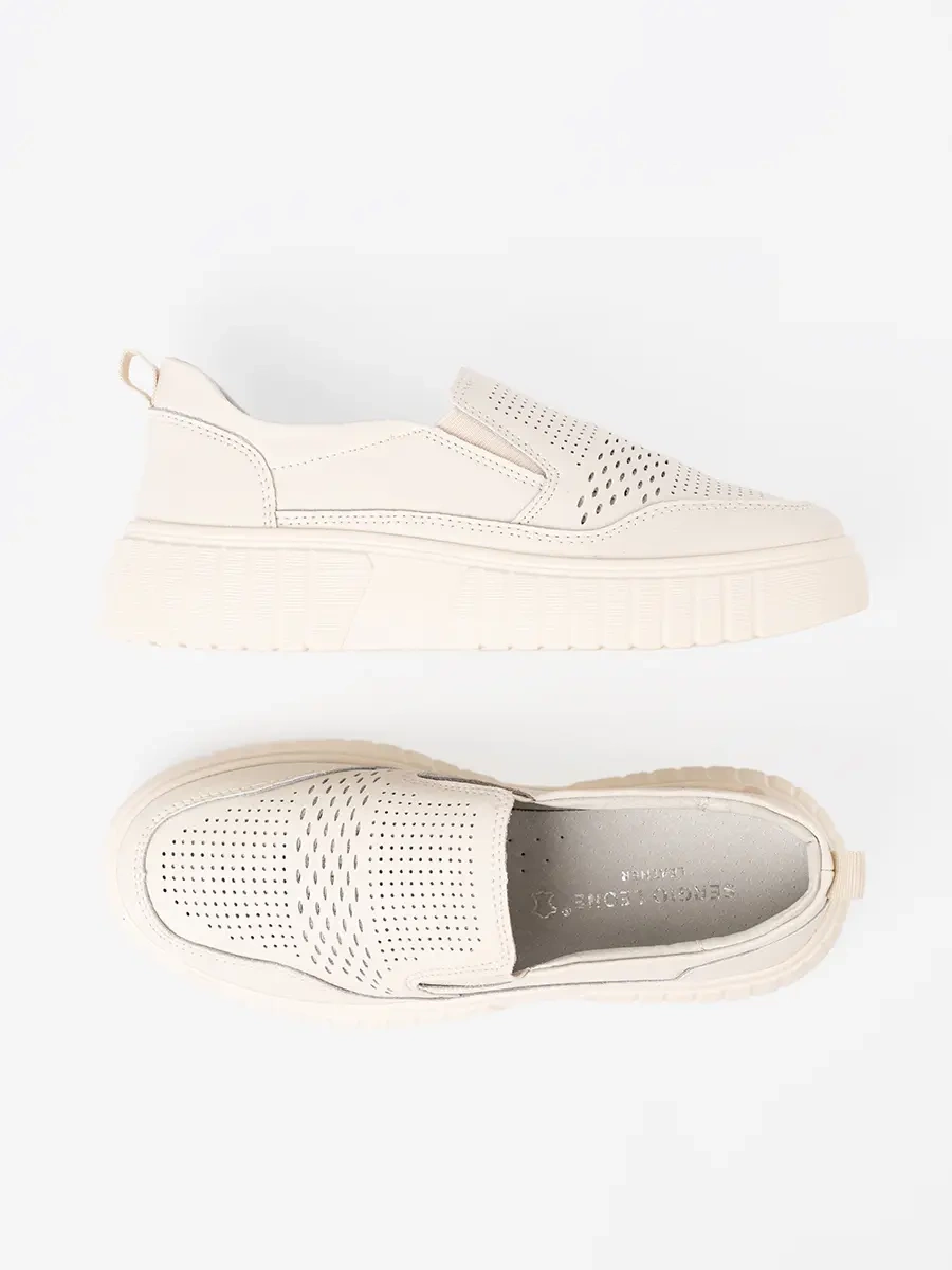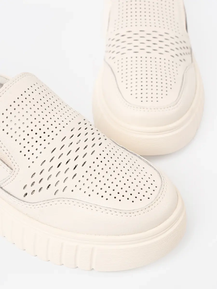 Polobotky z kůže na platformě béžové