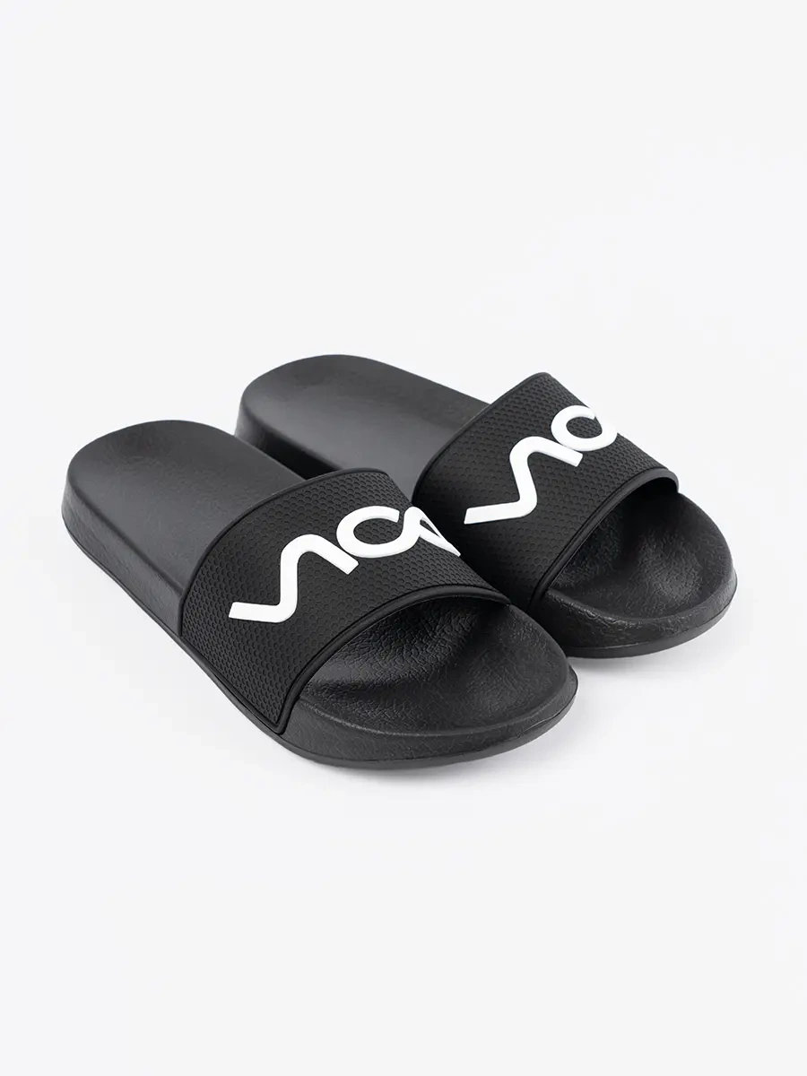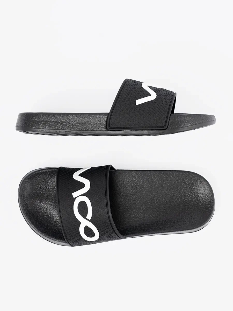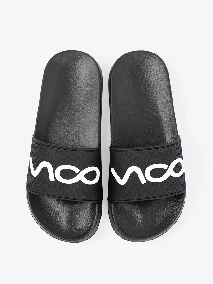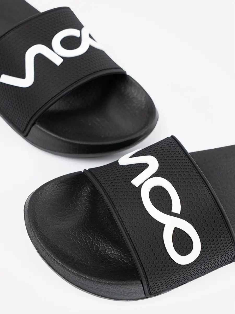 Černé klapki s nápisem - elegance a pohodlí v jednom