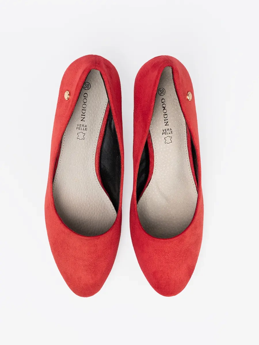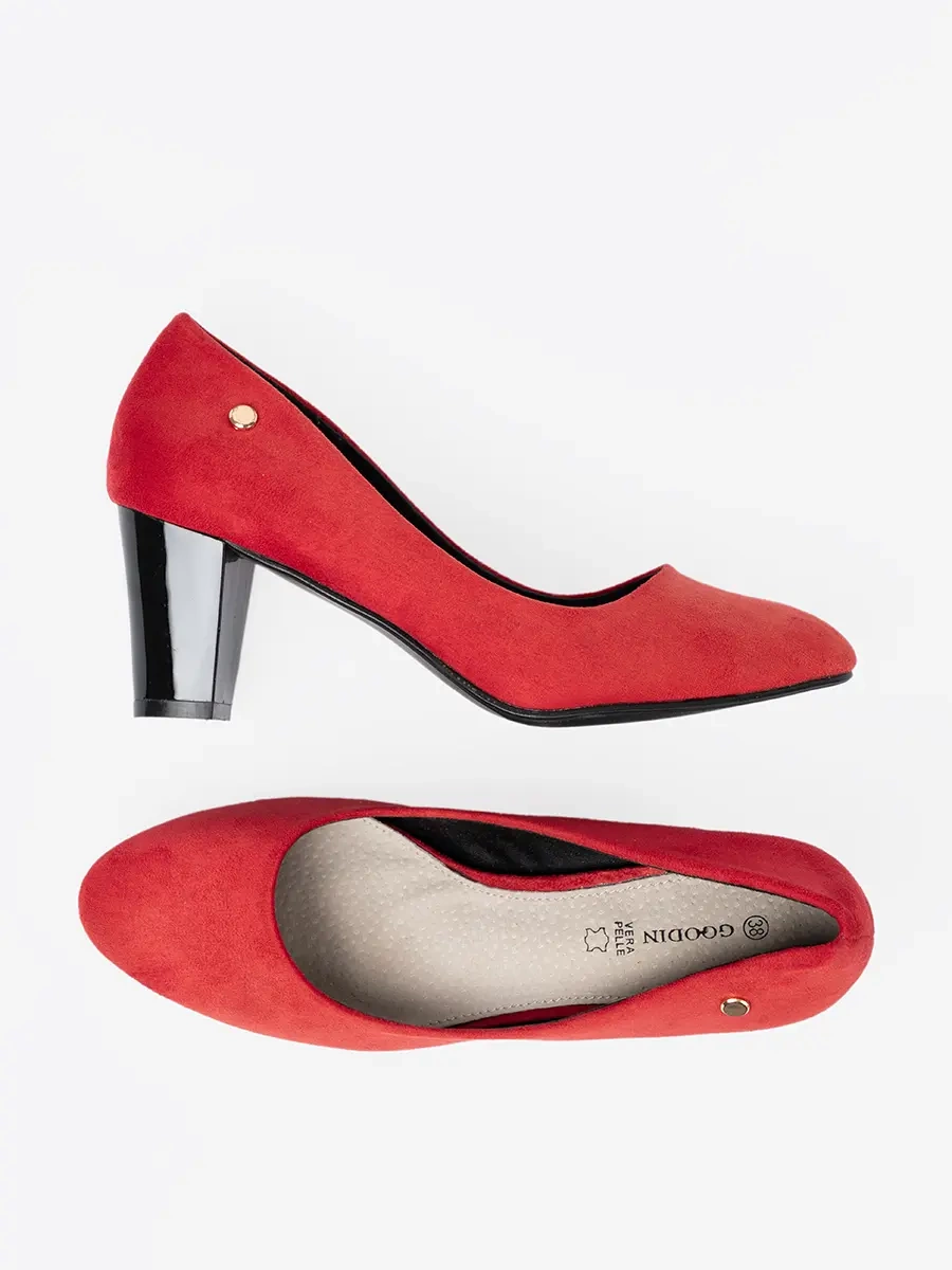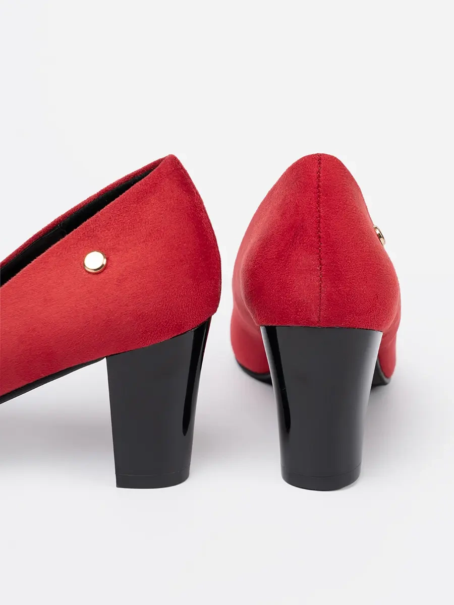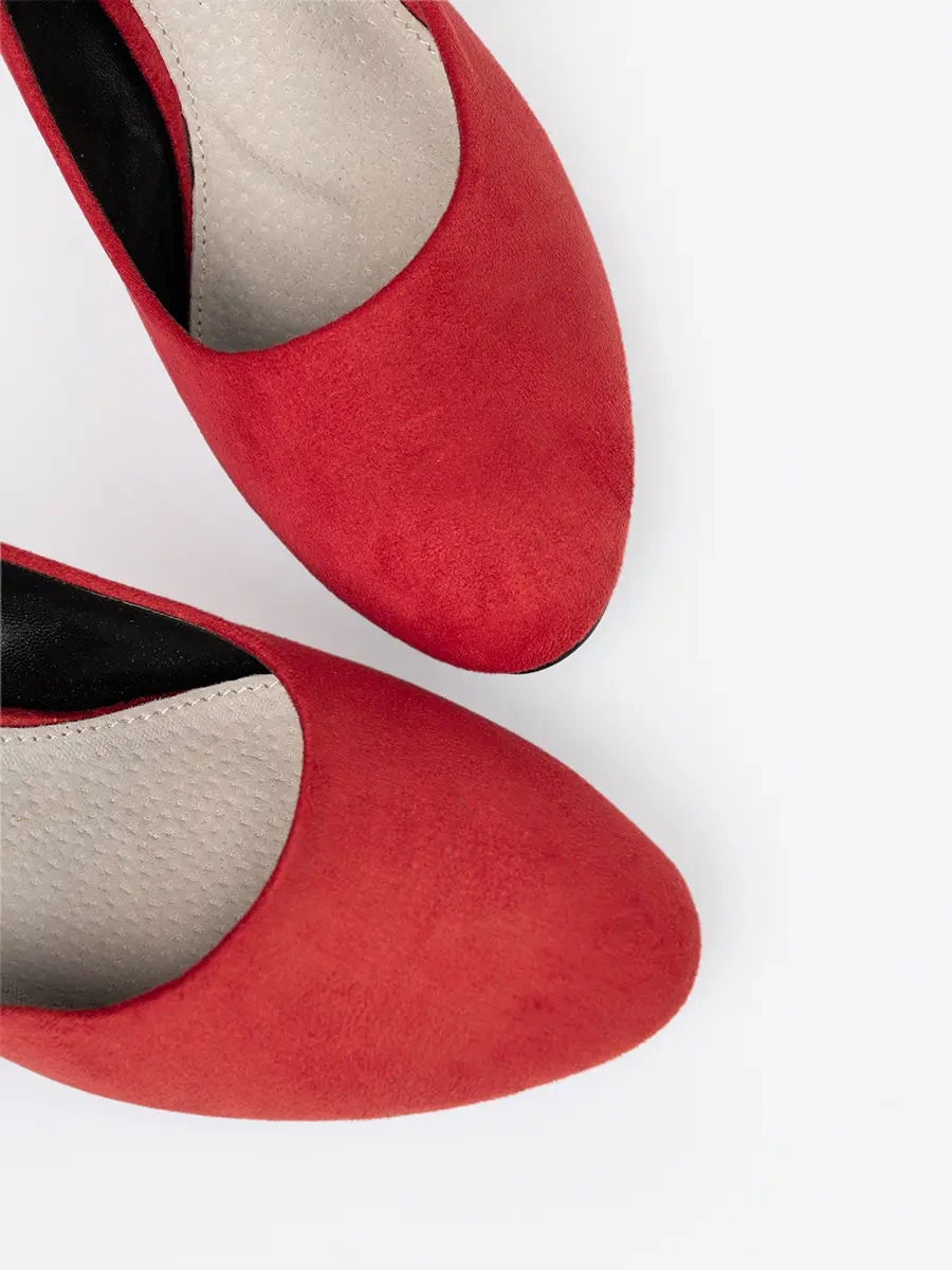 Červené zamszowe czółenka na obcasie - královská elegancie pro každou příležitost