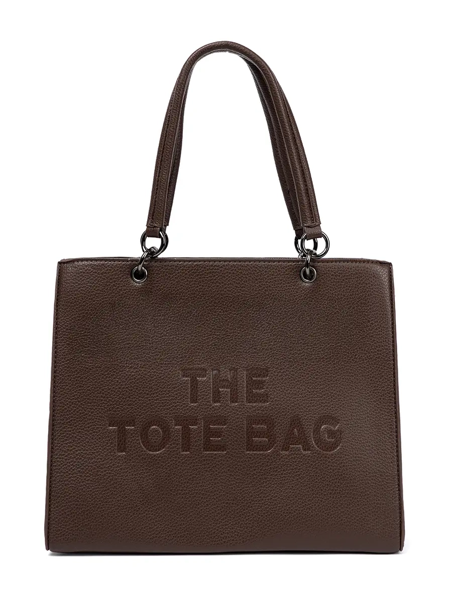 Shopperka kawowa s tłoczonym napisem - stylový doplněk pro moderní ženu