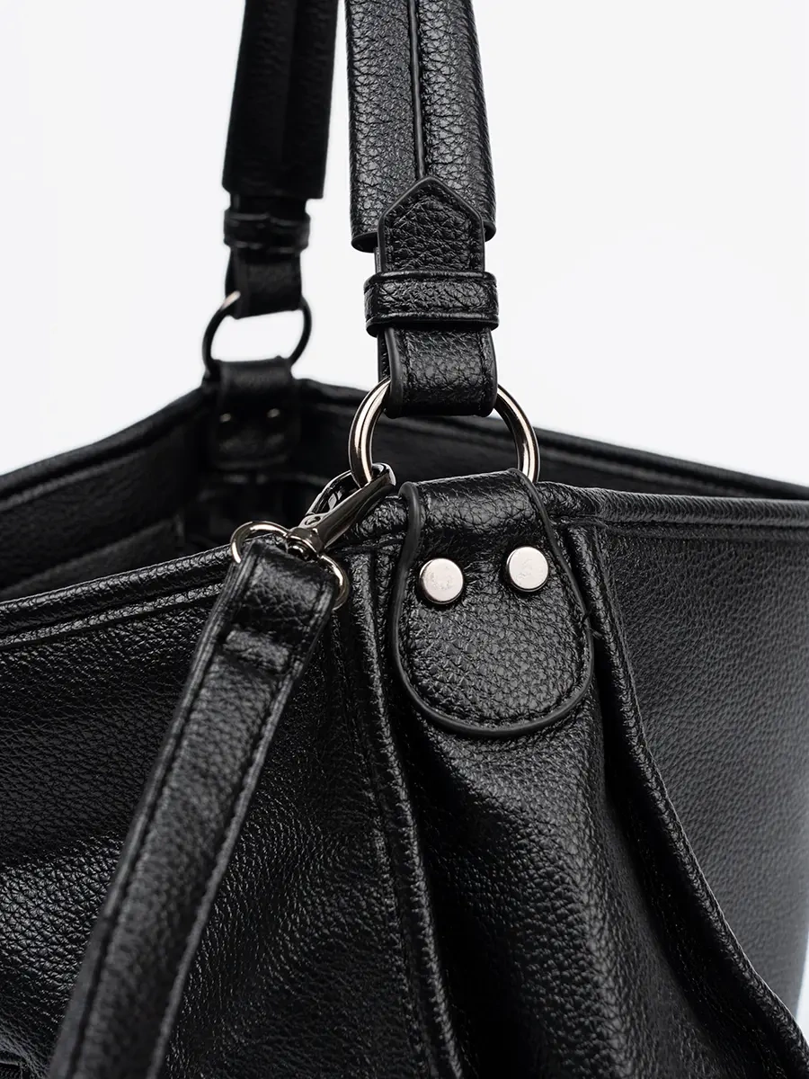 Klasická černá kabelka na rameno je nezbytným doplňkem v šatníku každé moderní ženy. Je ideální pro každodenní nošení, do práce nebo na večerní akce. Snadno se kombinuje s jakýmkoli oblečením a vytváří nezapomenutelný outfit pro každou příležitost.