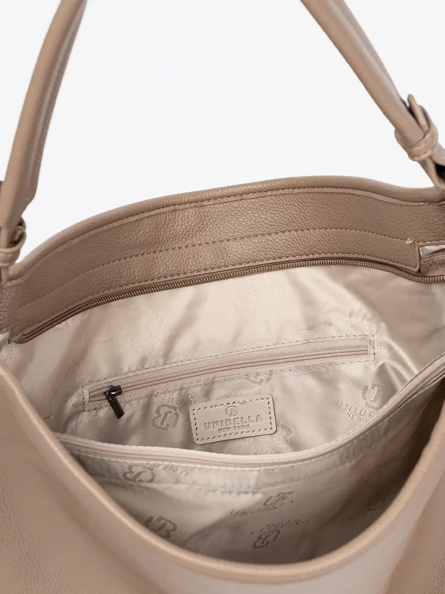 Béžová barva je univerzální a snadno se kombinuje s jakýmkoli outfitem. Tato kabelka dodá vašemu vzhledu sofistikovaný a moderní nádech. Její elegantní design a stříbrné kování ji činí ideální volbou pro každou příležitost, ať už jde o pracovní schůzku nebo večerní vycházku.
