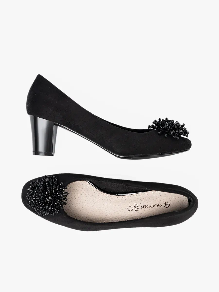 Černé lodičky s ozdobnou broží - dokonalé spojení elegance a modernosti