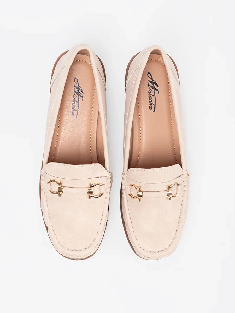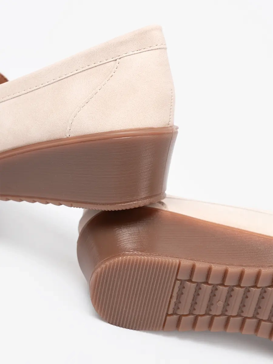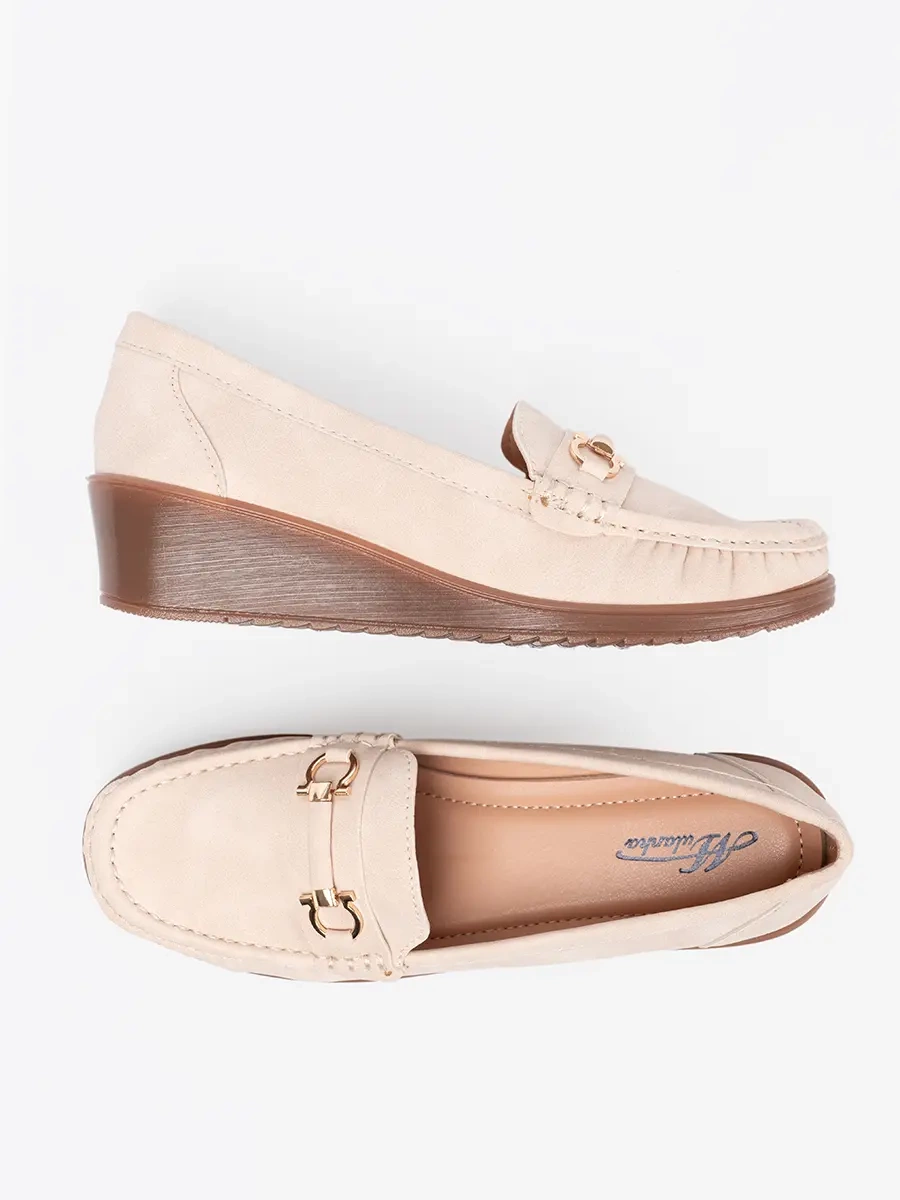 Béžové mokasíny na klínku s ozdobným řetízkem
