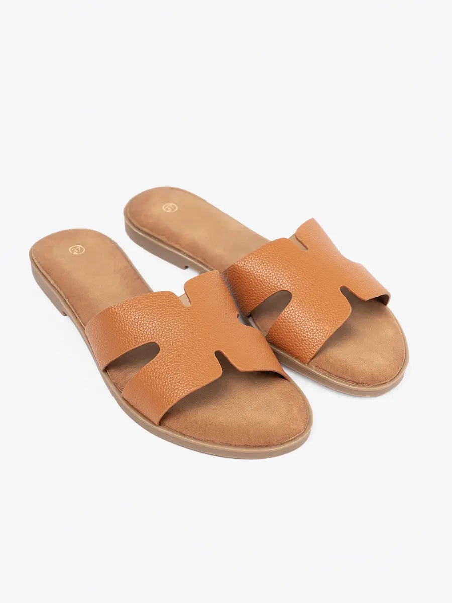 Karmelové dámské pantofle s výřezy - elegance a pohodlí v jednom