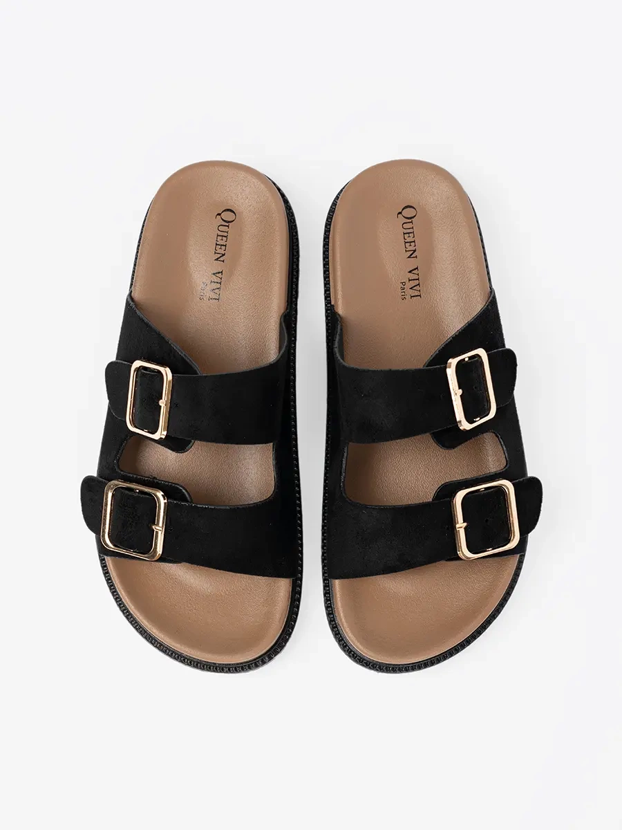 Černé dámské klapky se zlatými přezkami - moderní elegance pro každý den