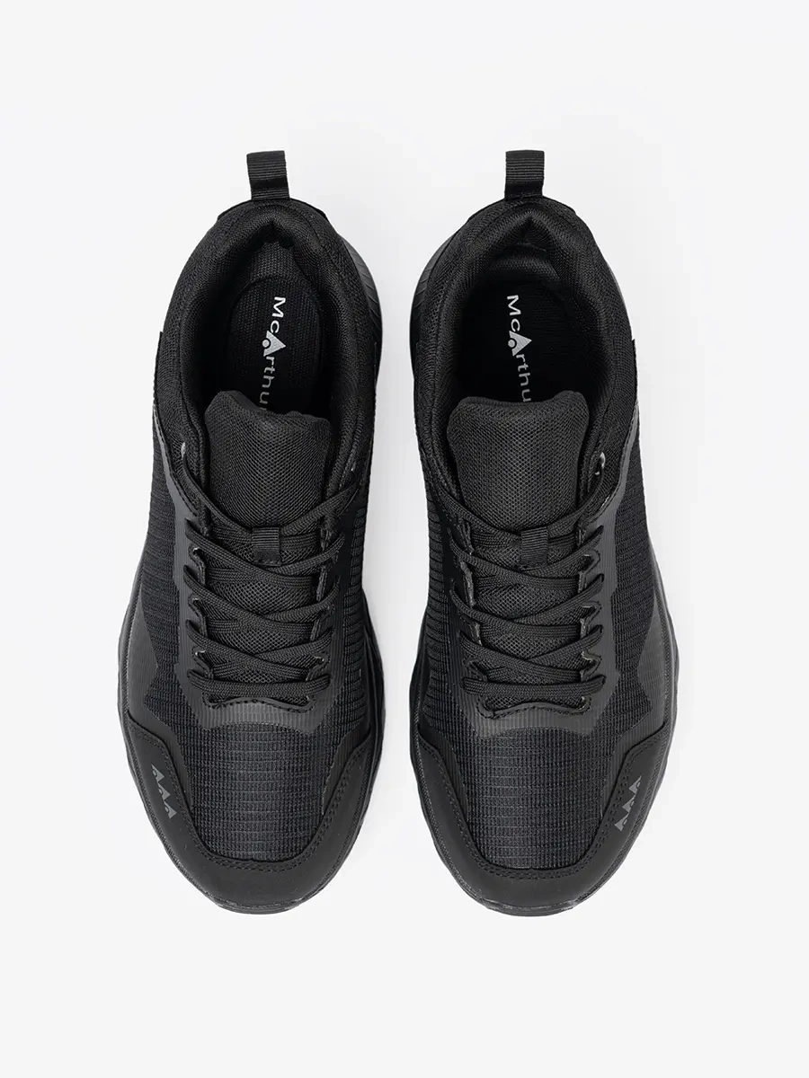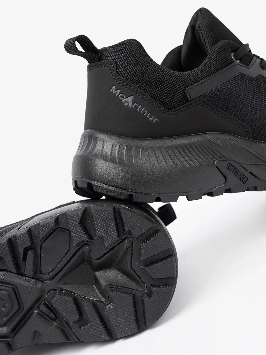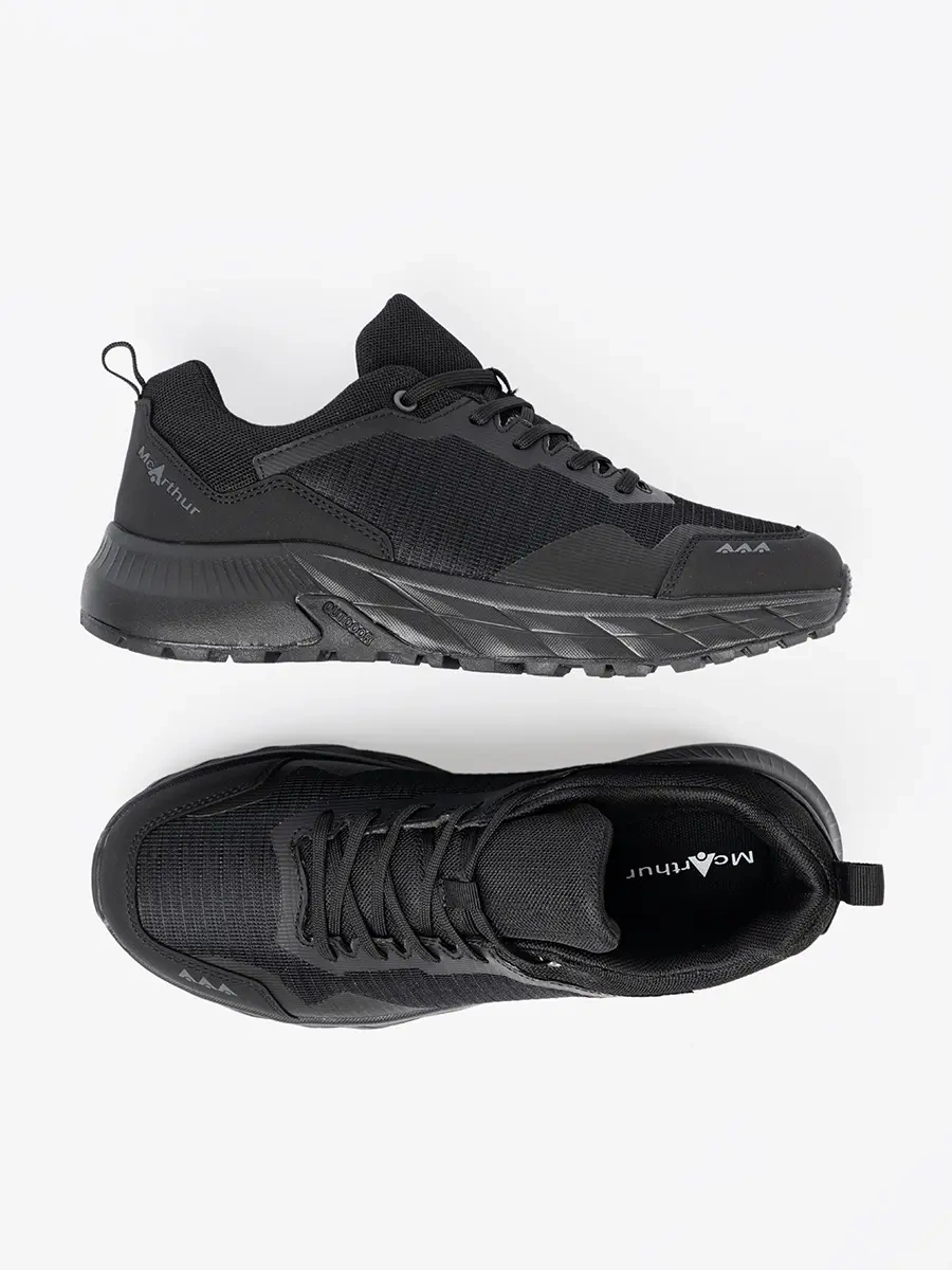Černé sportovní boty McArthur se vyznačují svým elegantním a moderním designem. Jejich univerzální černá barva se snadno kombinuje s různými styly oblečení, což z nich činí ideální volbu pro každodenní nošení. Zapínání na šněrování zaručuje dokonalé přizpůsobení tvaru vaší nohy.