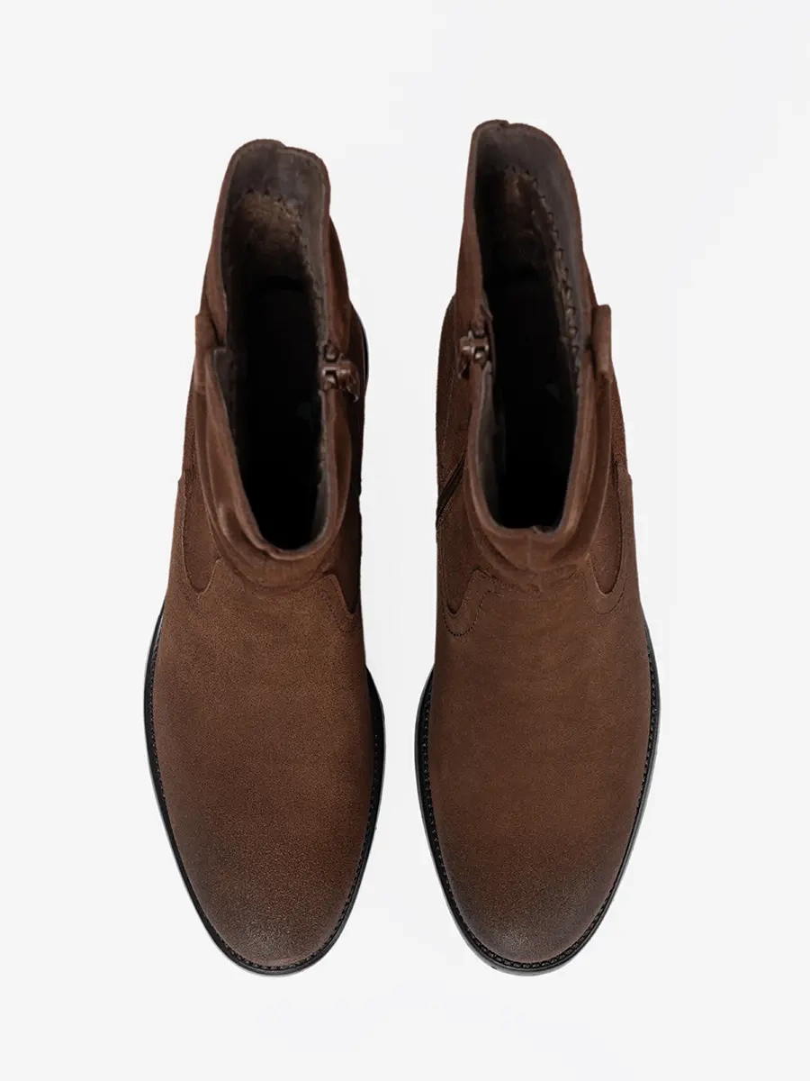Hnědé kožené kotníkové boty s vrásněným svrškem Sergio Leone
