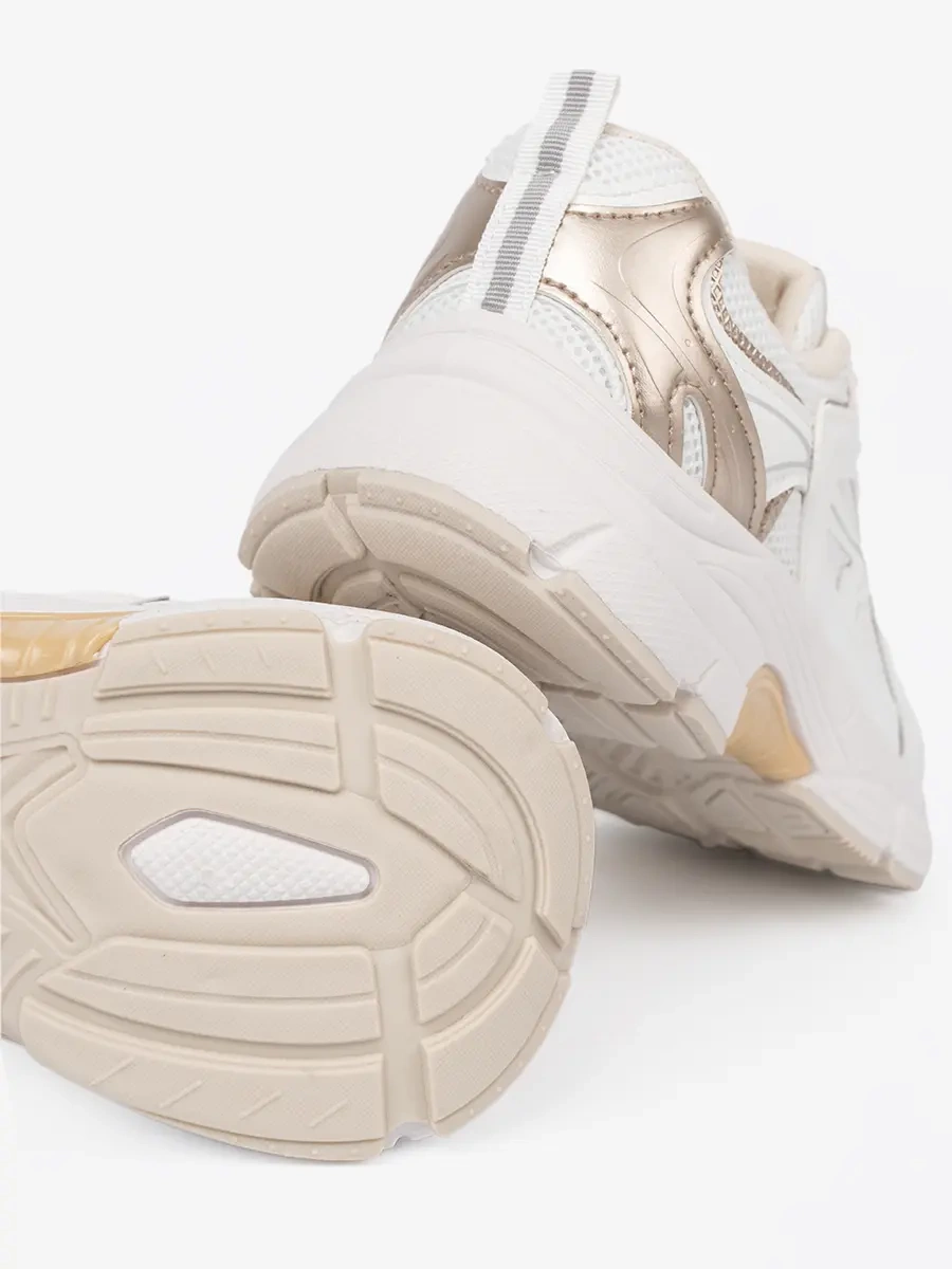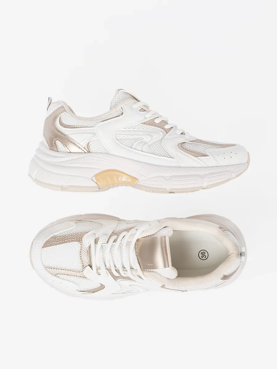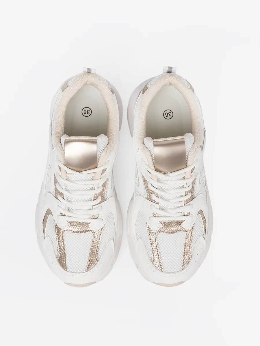 Bílé sneakersy s bežovo-zlatými vstavkami – trendový doplněk pro každodenní nošení