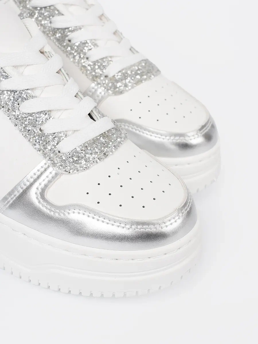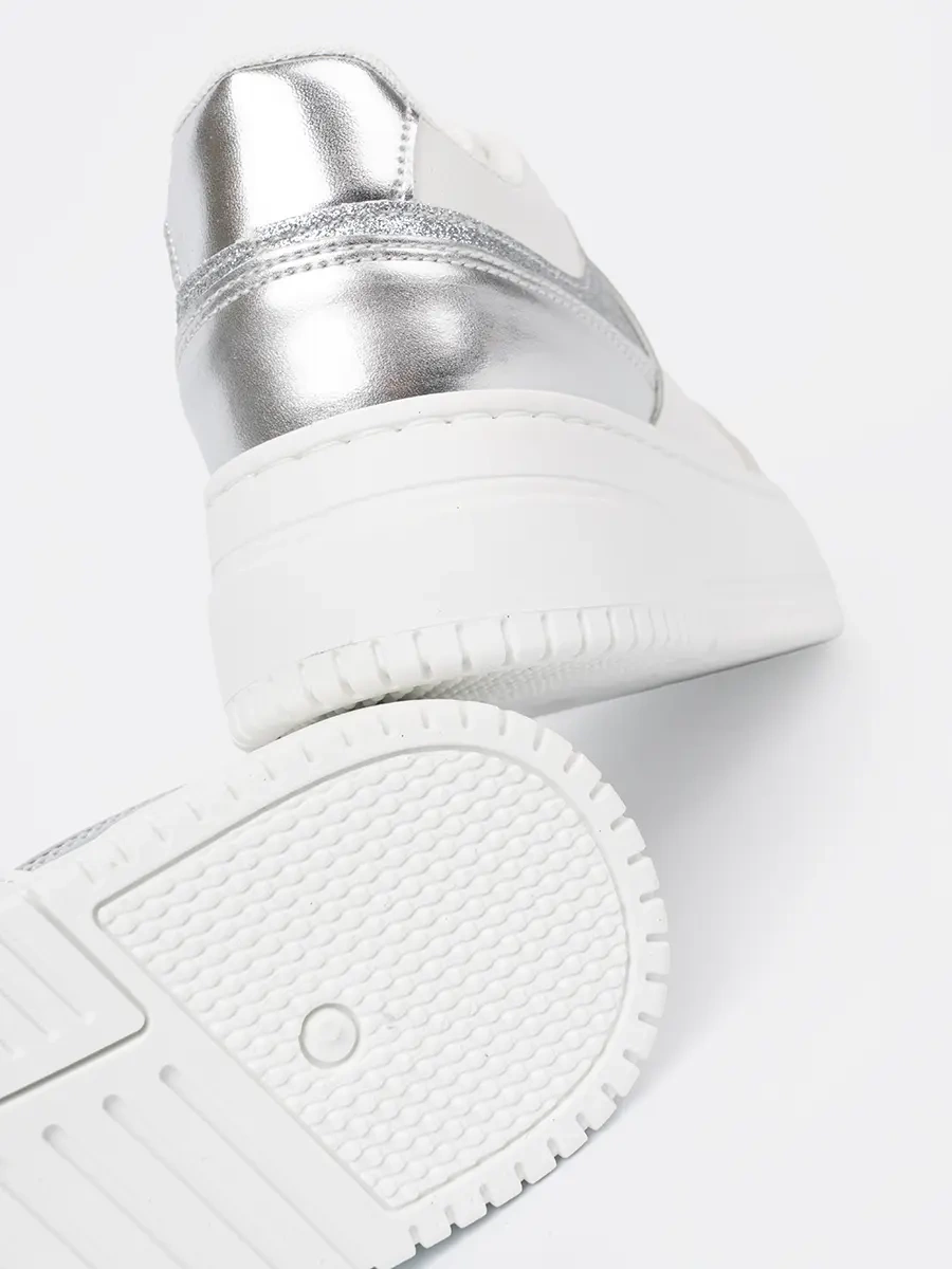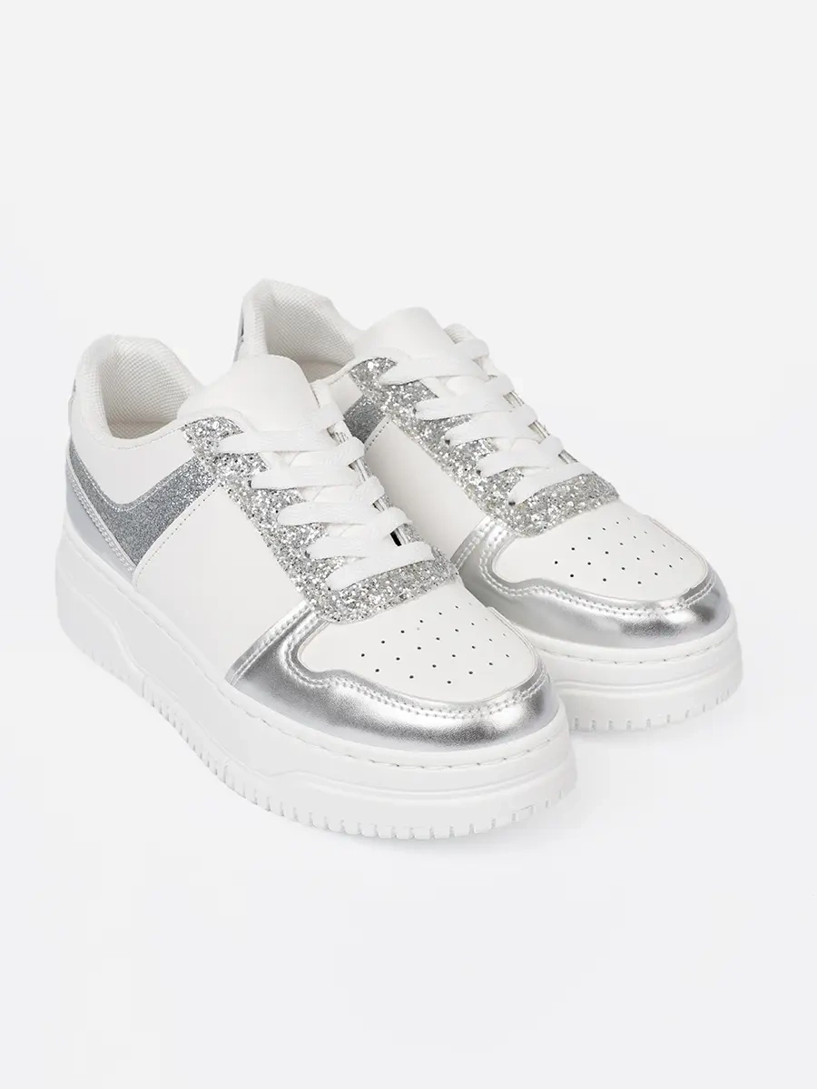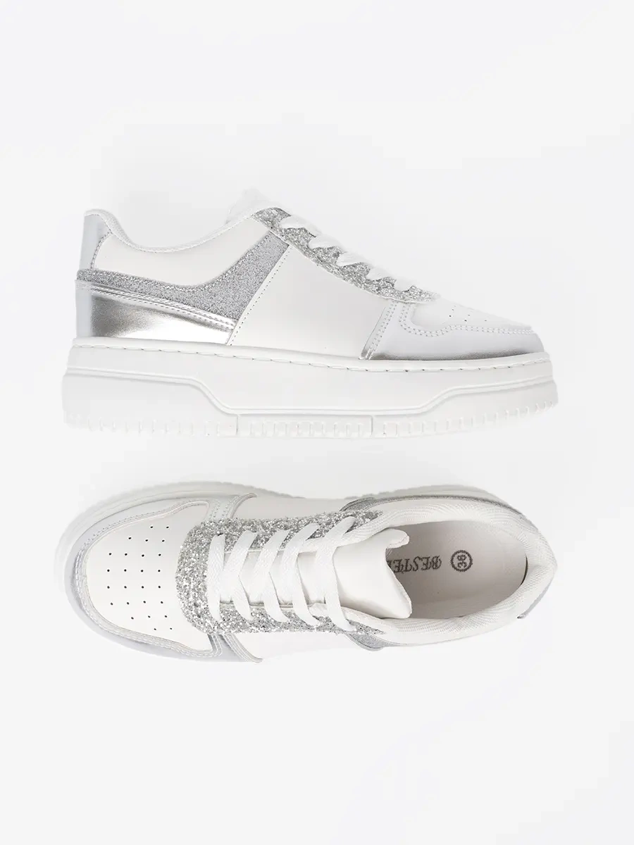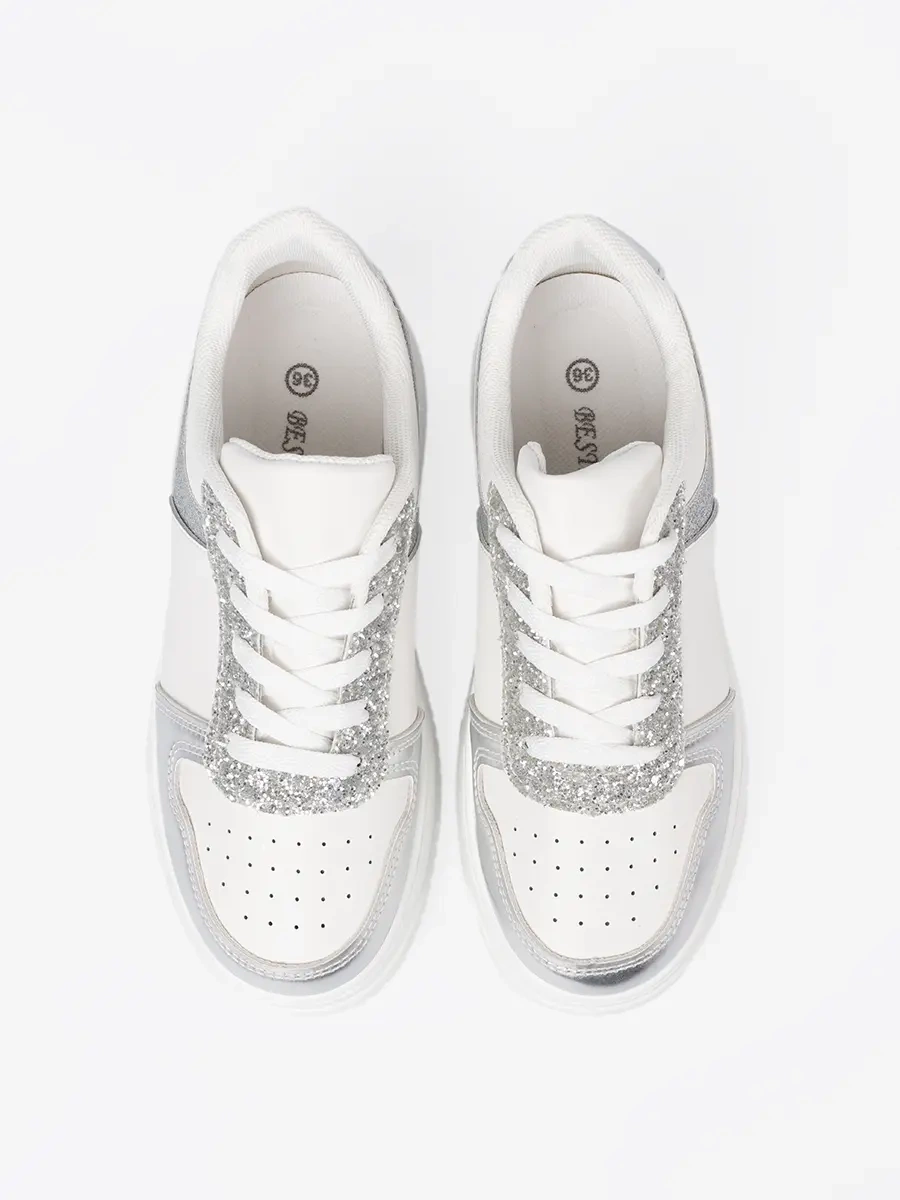 Bílo-stříbrné sneakersy s lesklými detaily – eleganci v pohodlí
