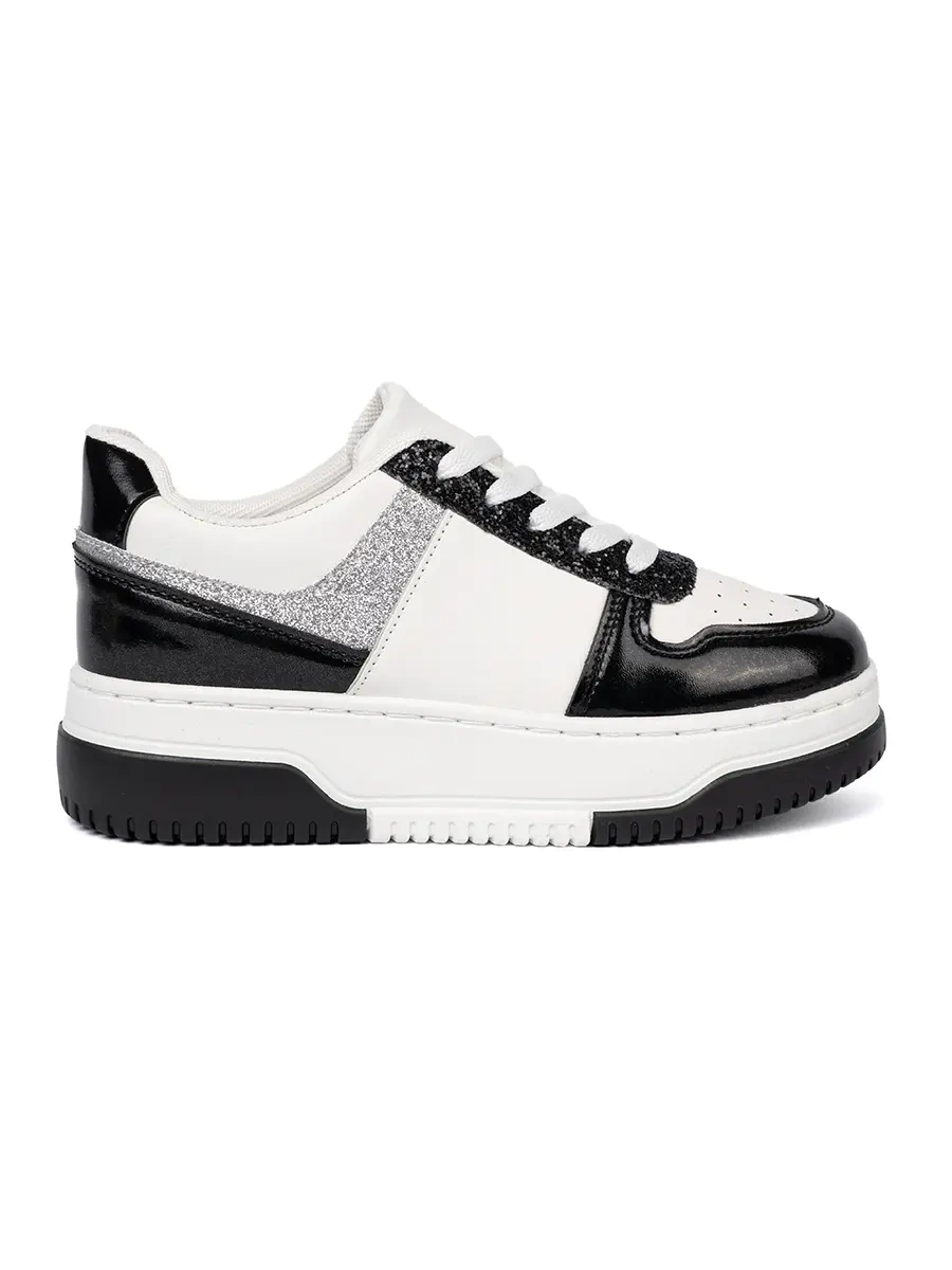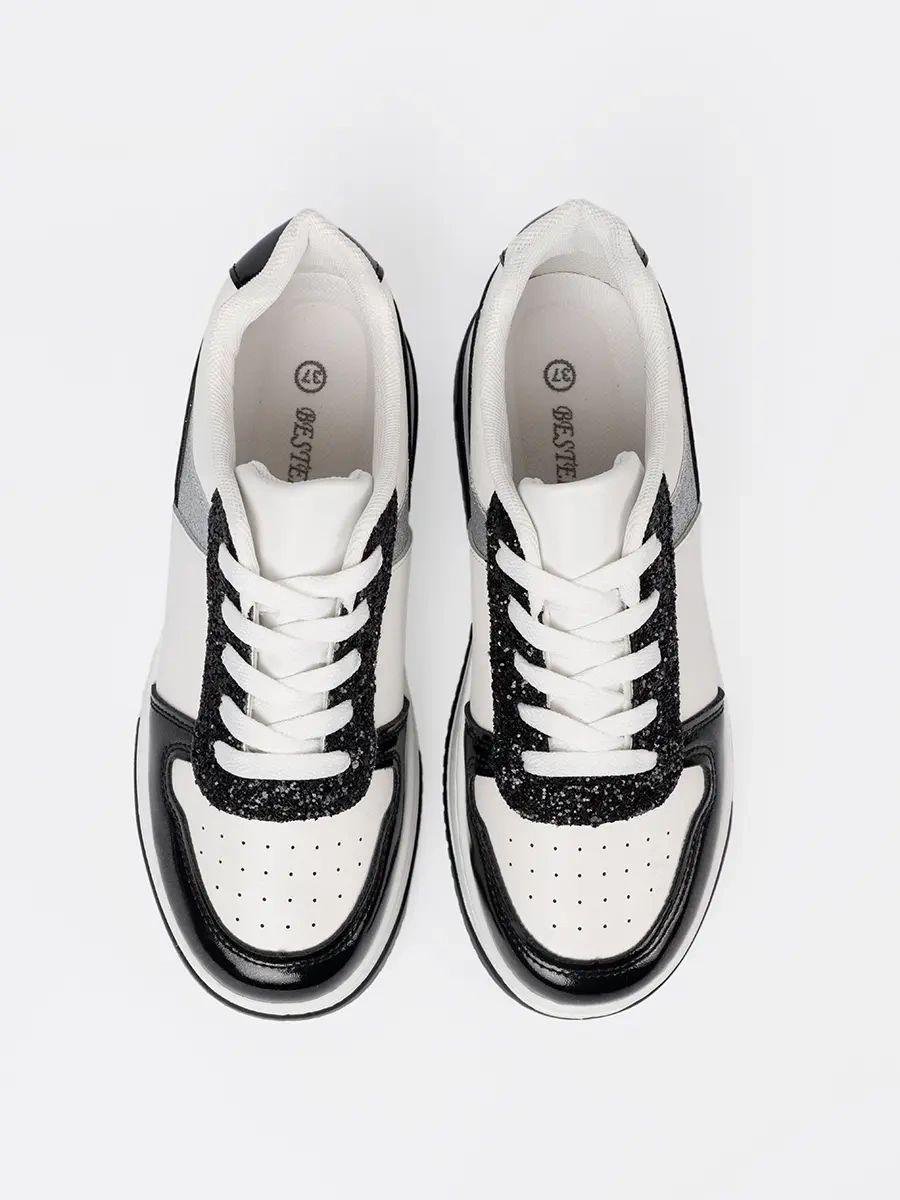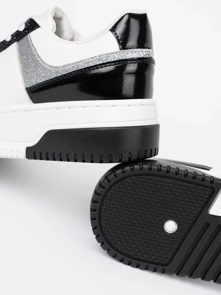Černo-bílé sneakersy s jiskřivými stříbrnými detaily
