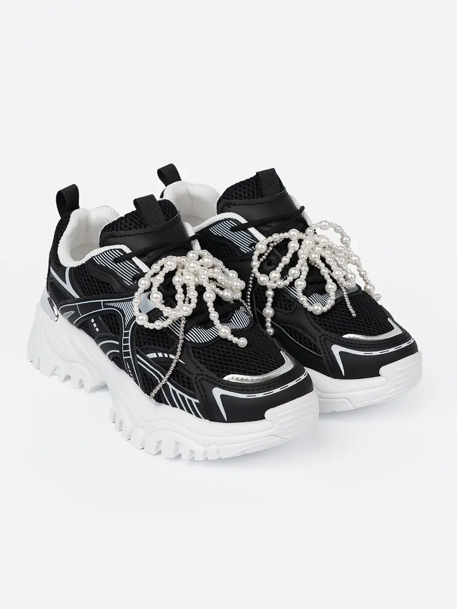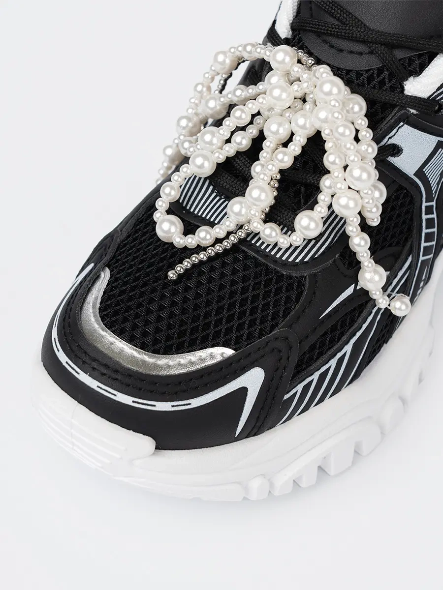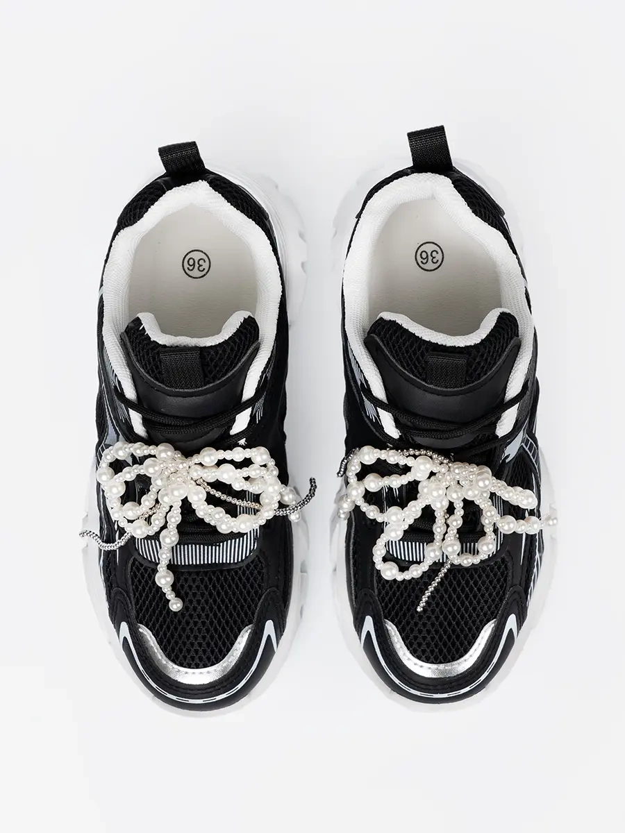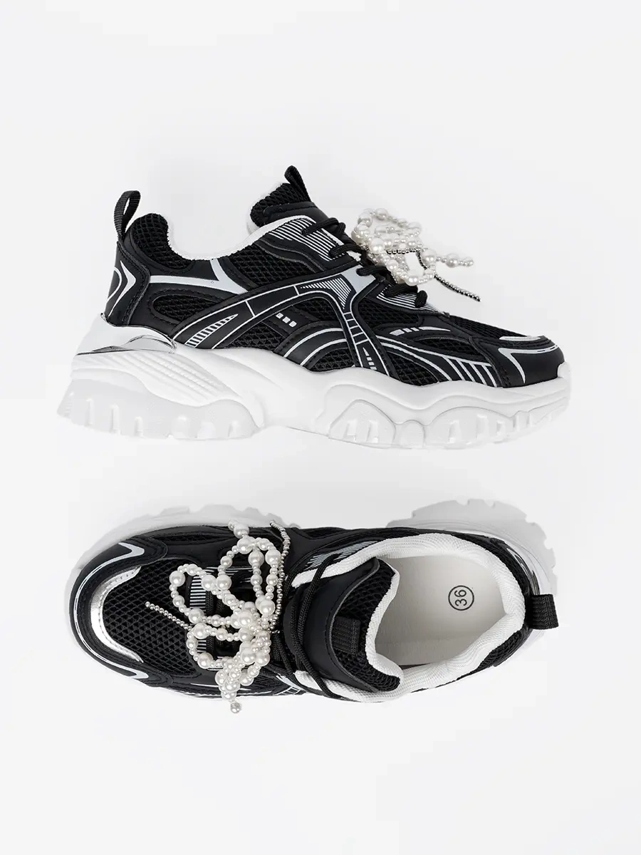 Černé sneakersy s bílou mašlí a korálky – moderní a pohodlný doplněk vašeho šatníku