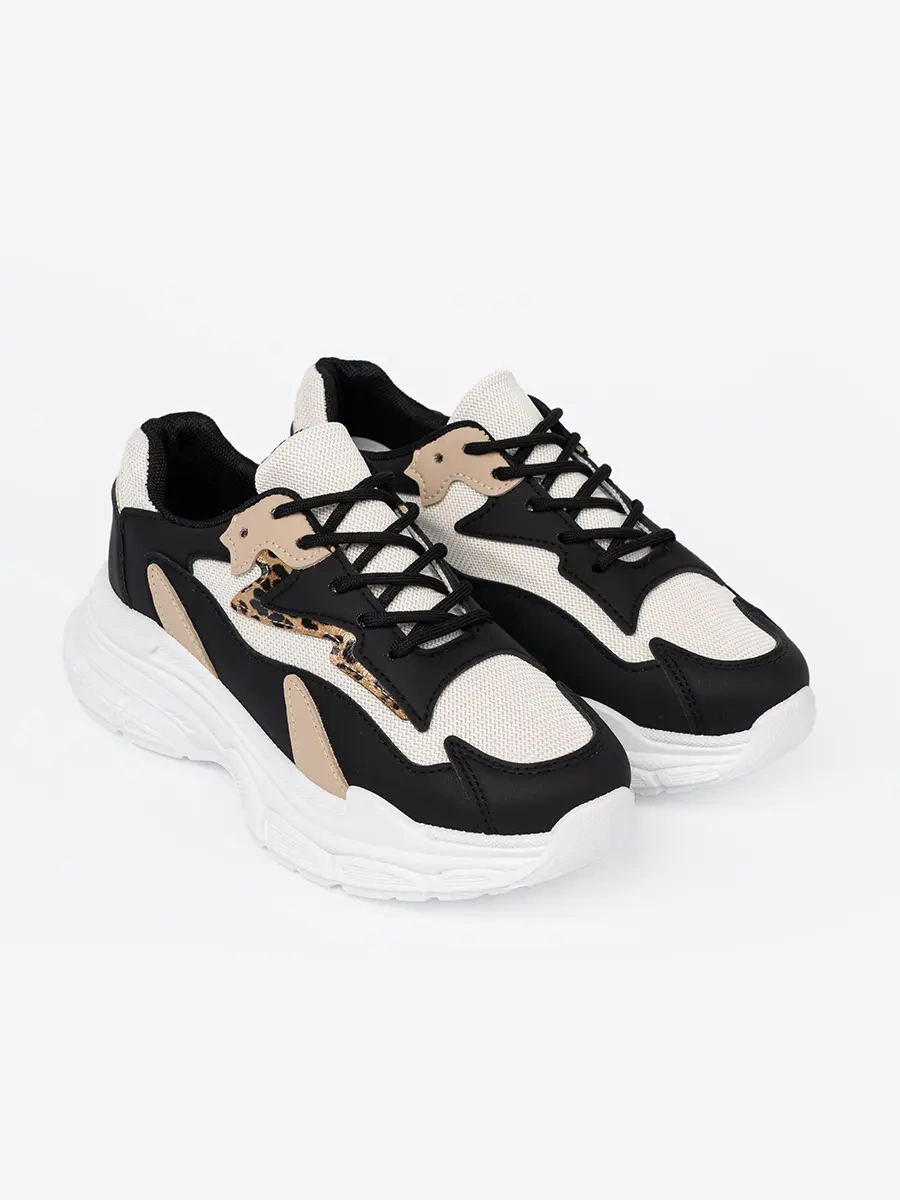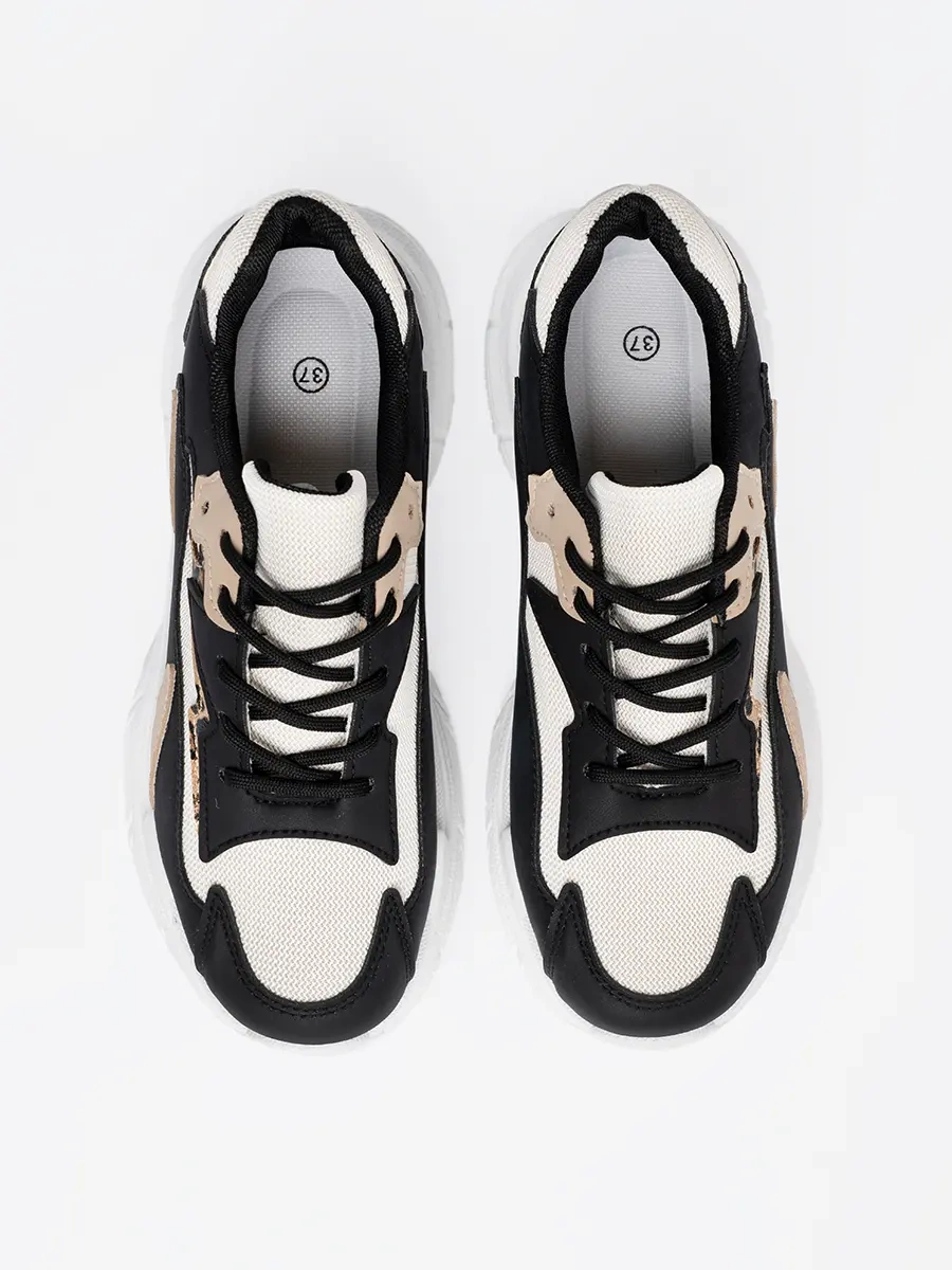 Černé a béžové dámské sneakersy s hrubou podrážkou